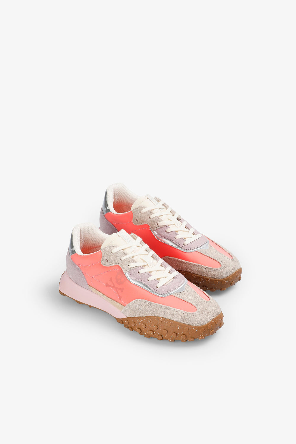 Tennis avec skull latéral contrastant. Lacets. Semelle en phylon et TPR contrastante. Talon métallisé contrastant et logo sur la languette.
