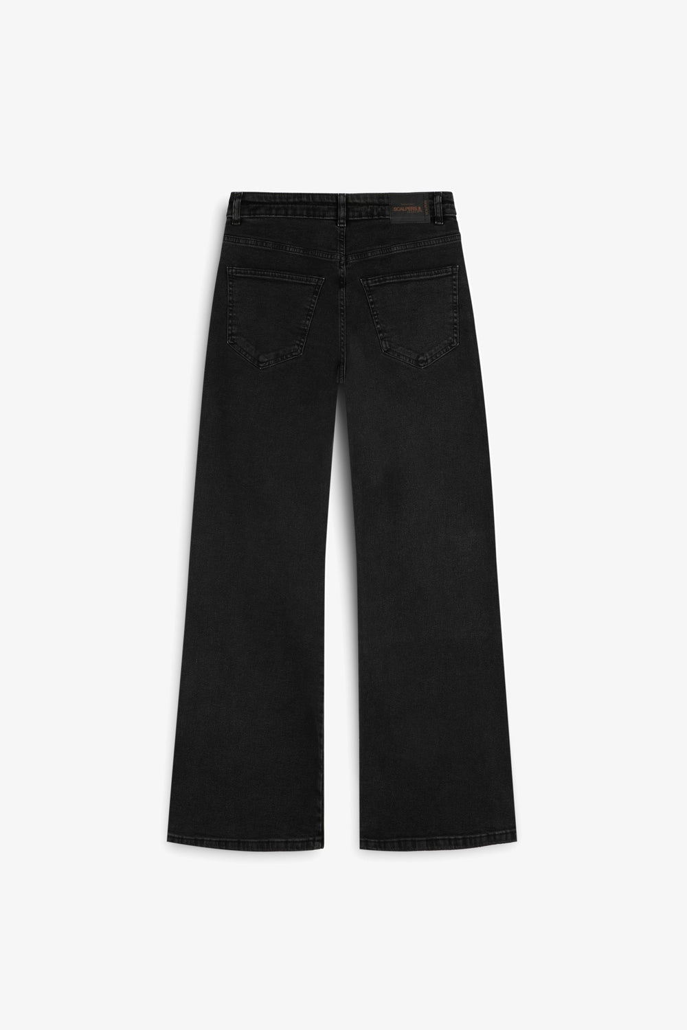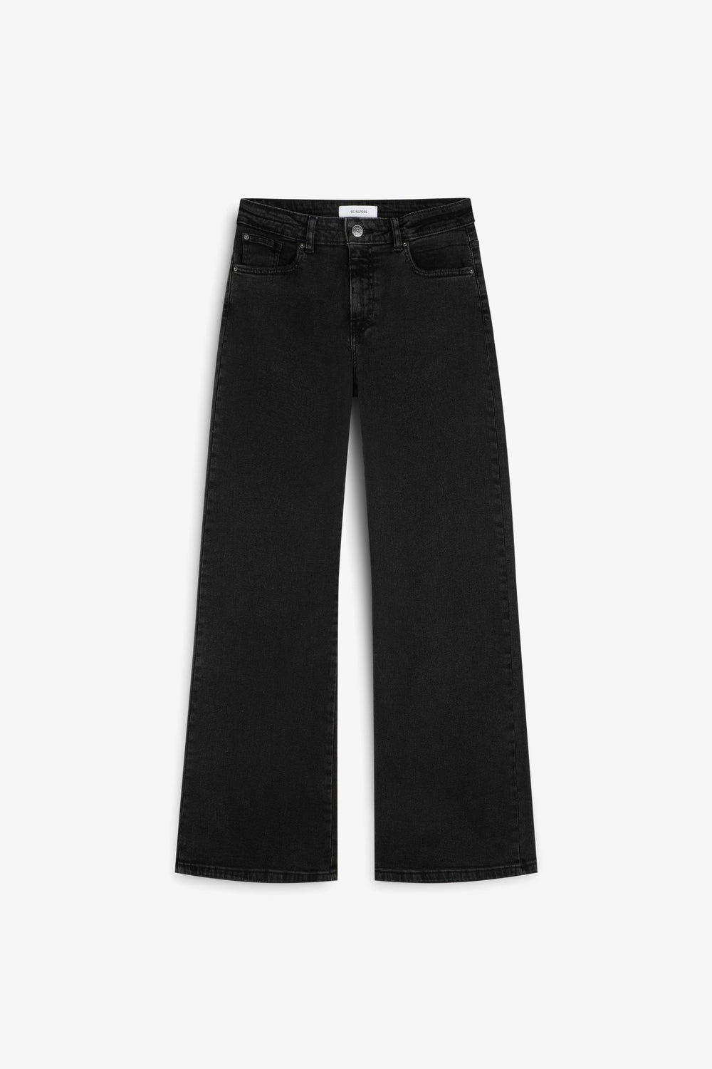 Pantalon noir à taille moyenne avec passants de ceinture. Coupe full length, fermeture éclair et bouton sur le devant. Poches sur le devant et à l’arrière.