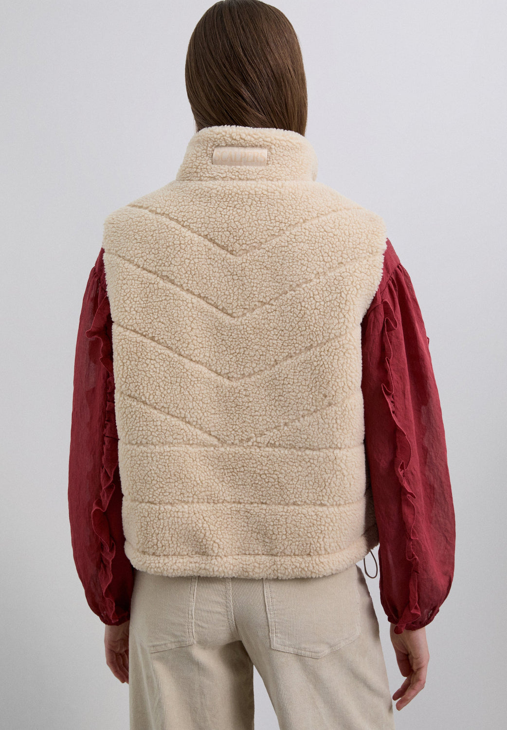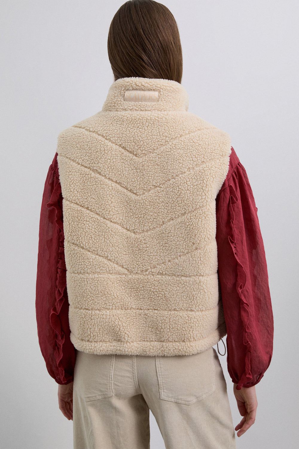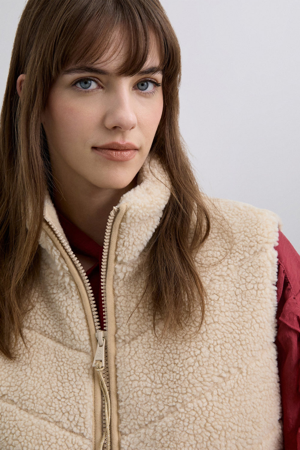 Veste courte sans manches en polaire. Coupe étroite. Deux poches sur le devant. Cordon de serrage dans le bas. Col montant. Fermeture éclair devant.
