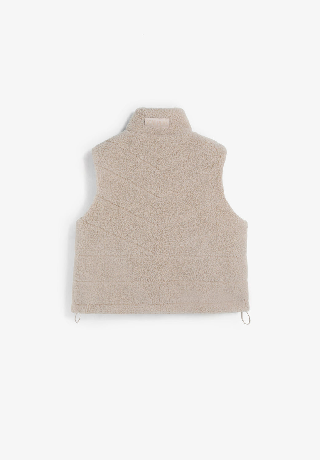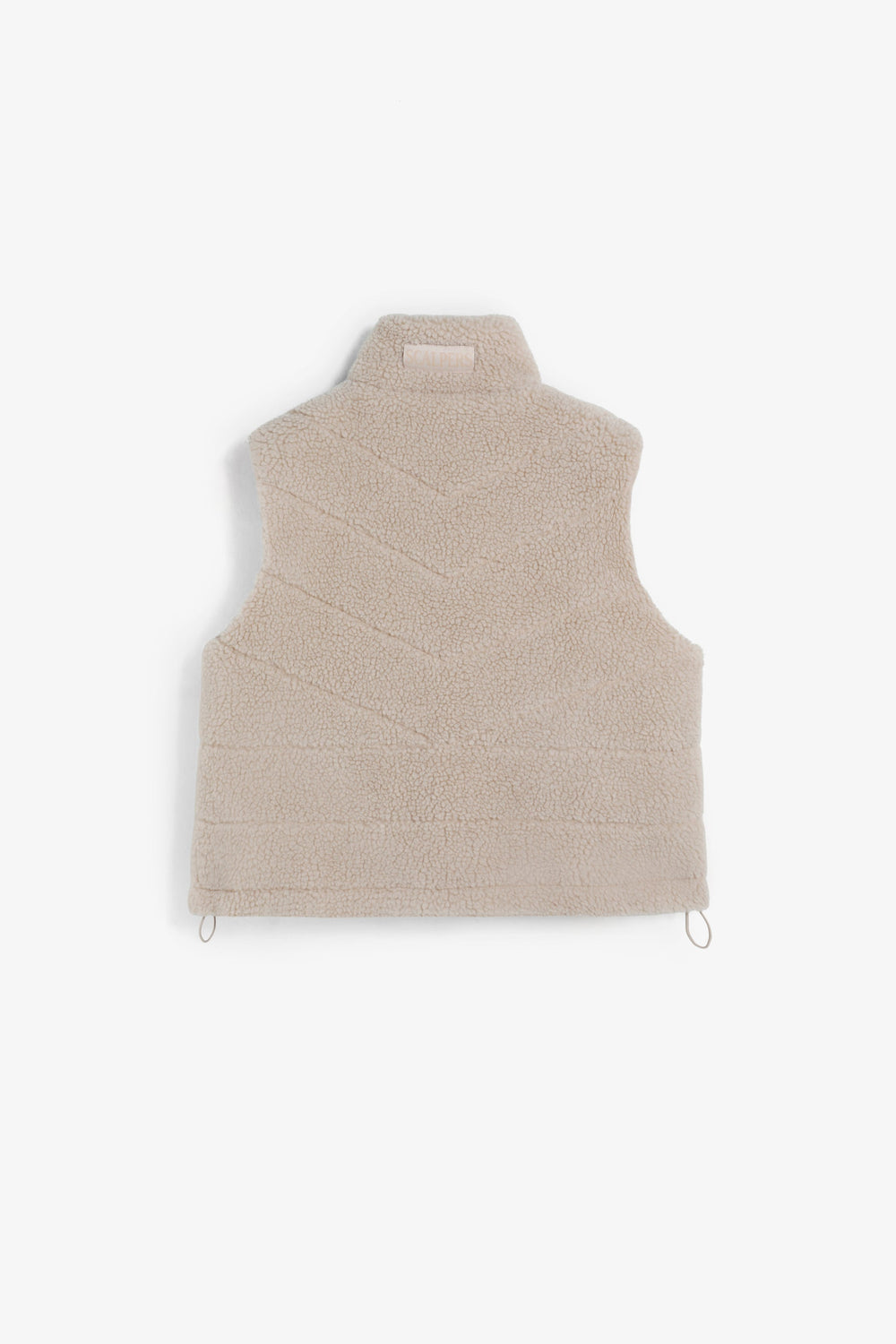 Fitted fleece gilet. Slim fit. Two front pockets. Adjustable drawstring hem. High collar. Front zip fastening.
