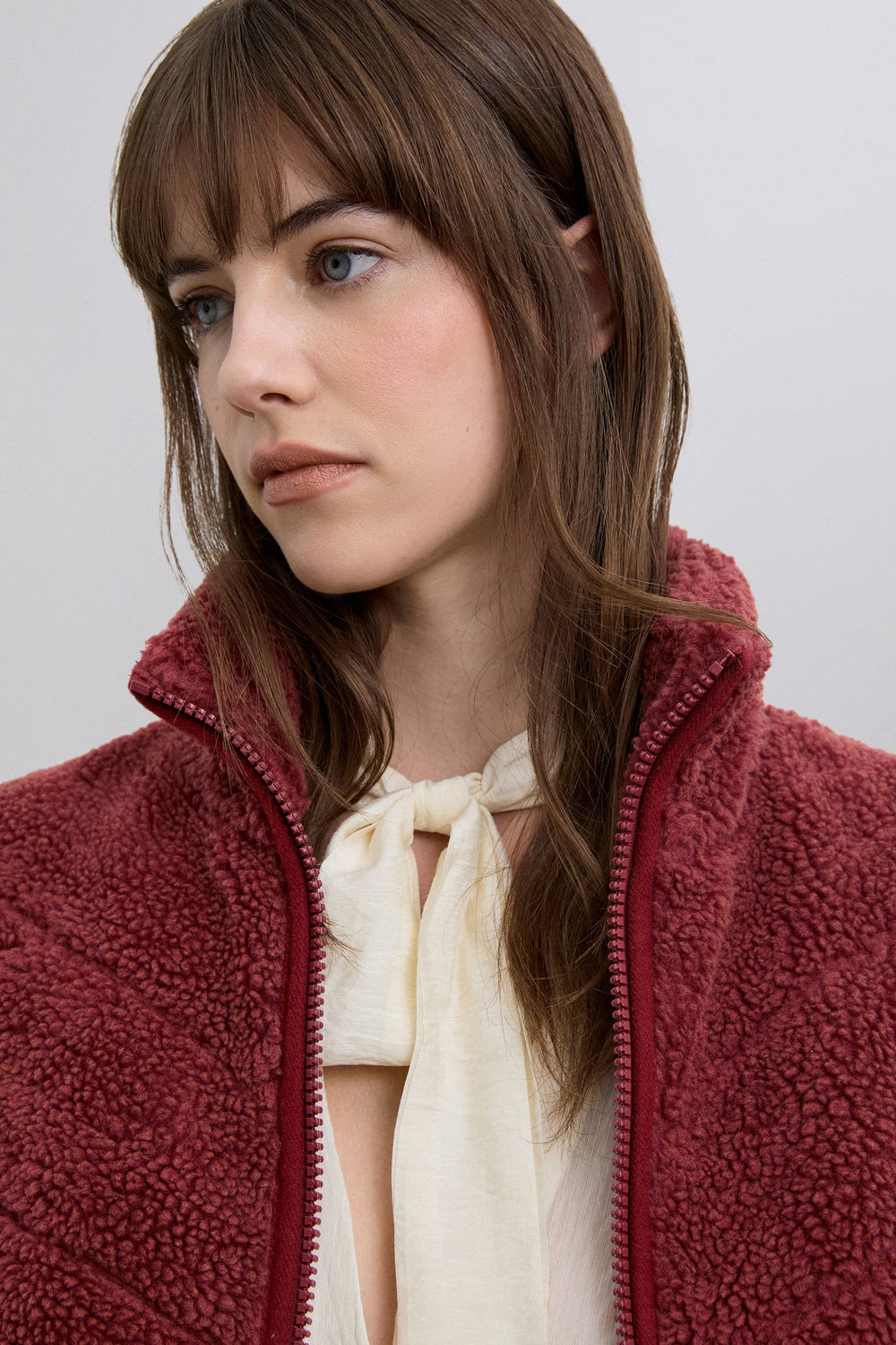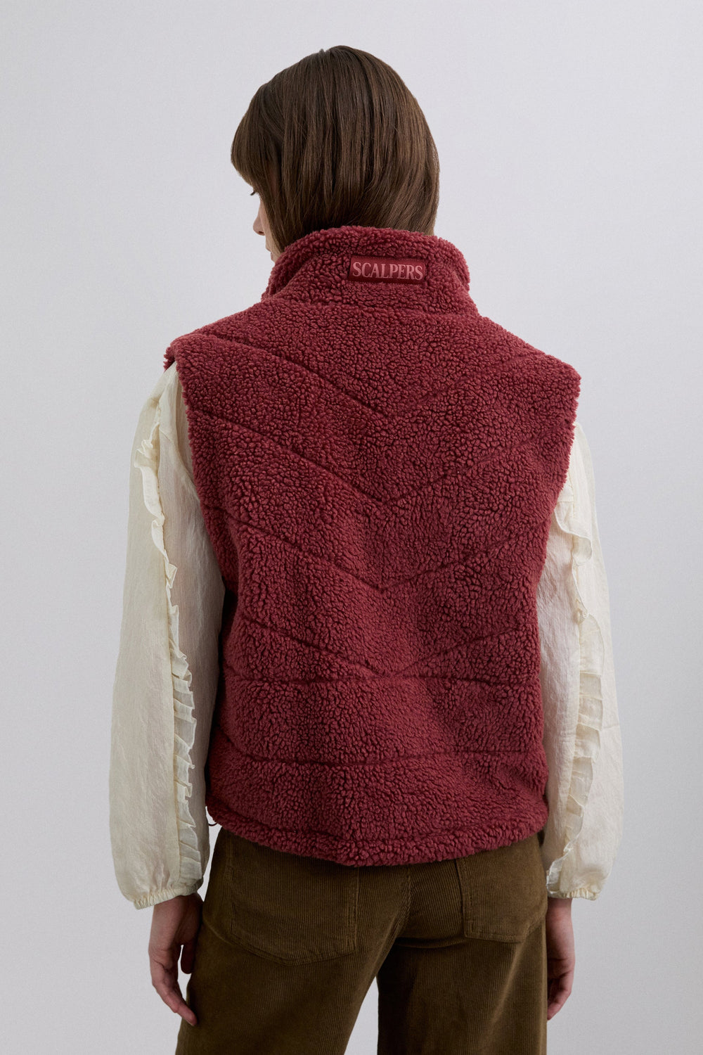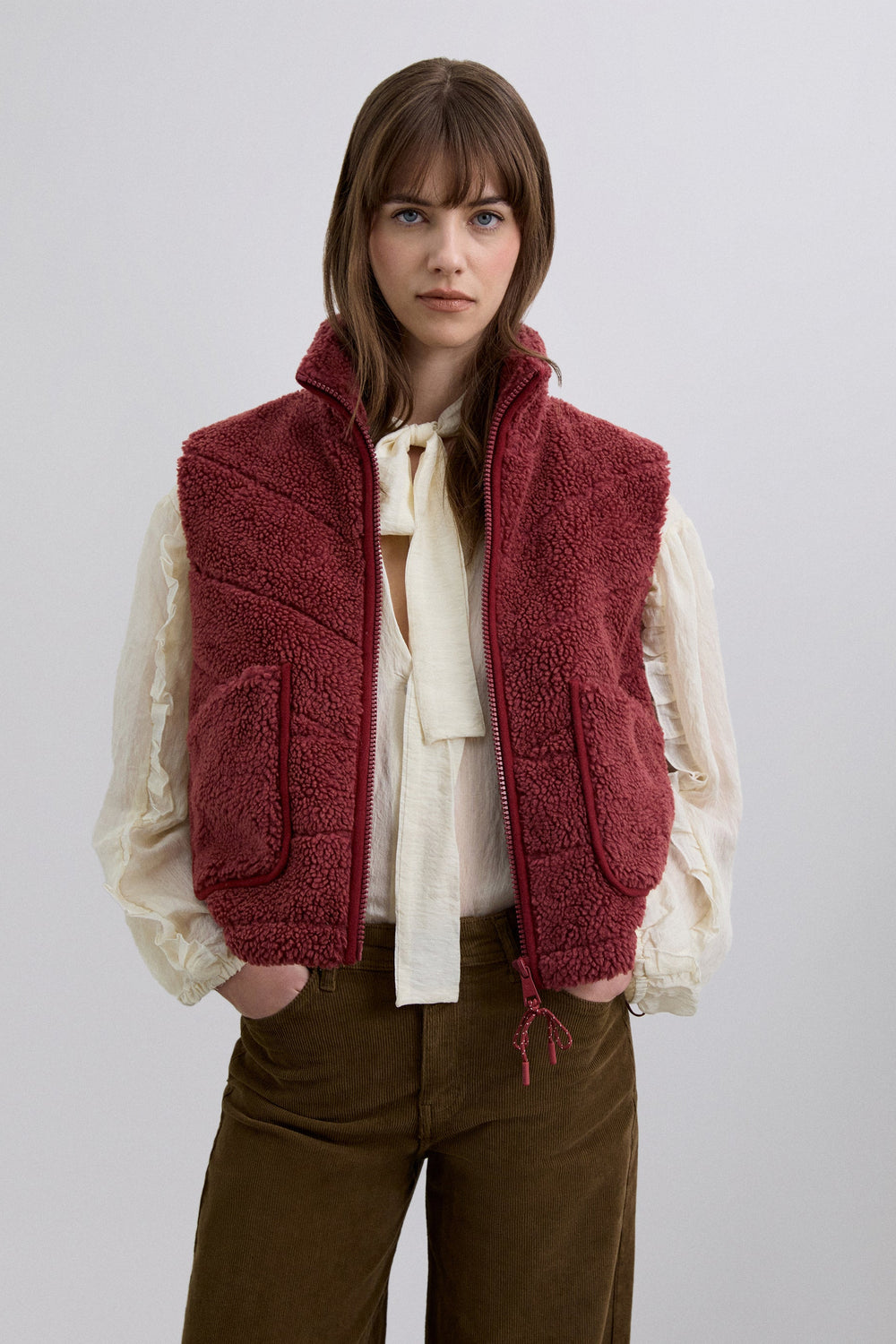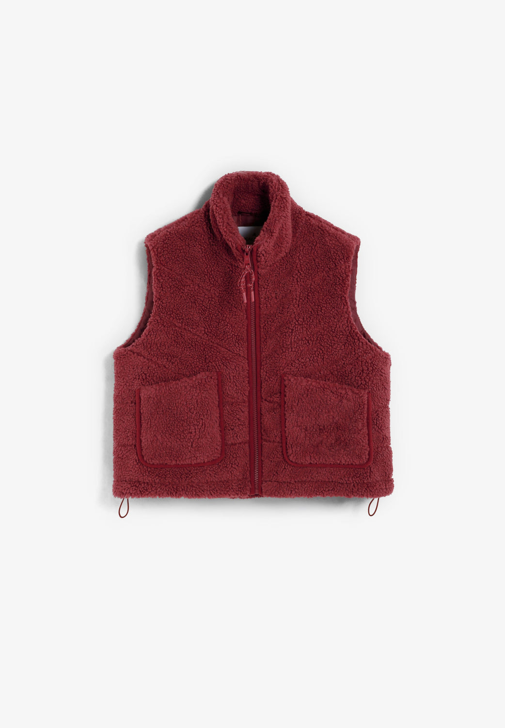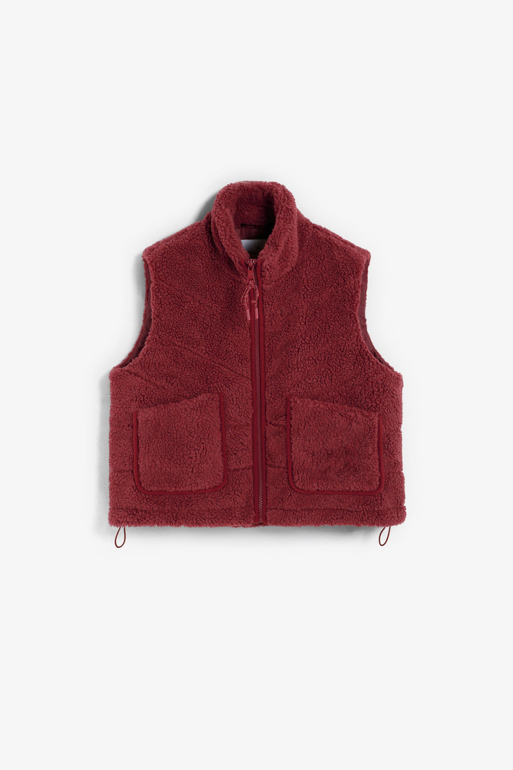 Veste courte sans manches en polaire. Coupe étroite. Deux poches sur le devant. Cordon de serrage dans le bas. Col montant. Fermeture éclair devant.
