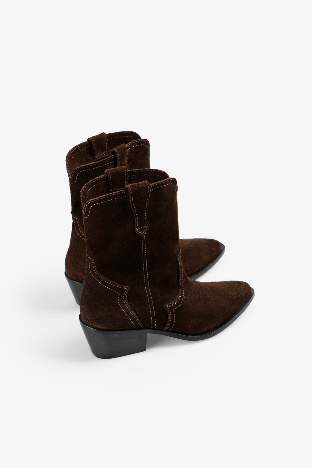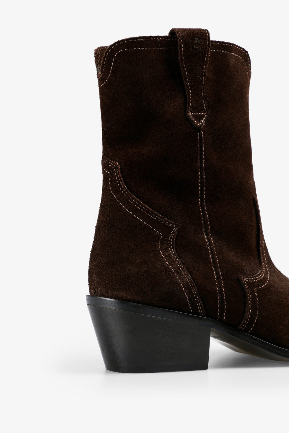 Santiags basses 100 % cuir. Motifs western avec surpiqûres contrastantes.