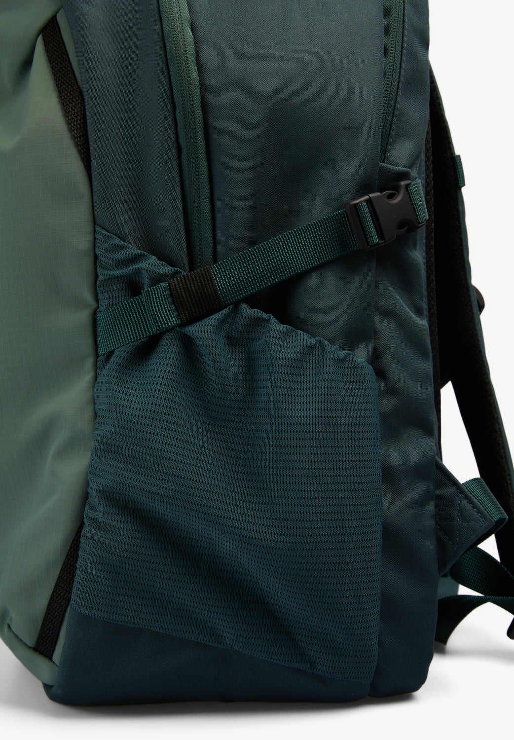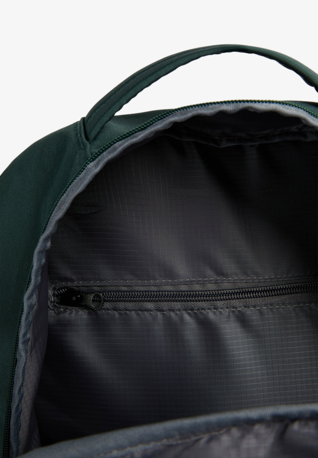 Sac à dos avec double poche et lettering sur le devant. Confectionné en tissu technique. Fermeture Éclair. Bretelles au dos et poignée supérieure. Tissus mélangés, sangles et bordures élastiques. Poche avant zippée.