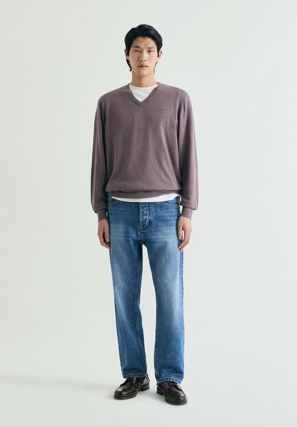 Pull 100 % coton supima de haute qualité. Col en V. Skull brodé ton sur ton sur la poitrine. Finitions côtelées.