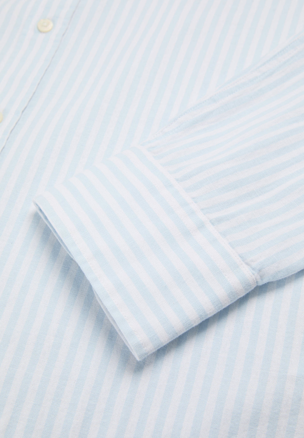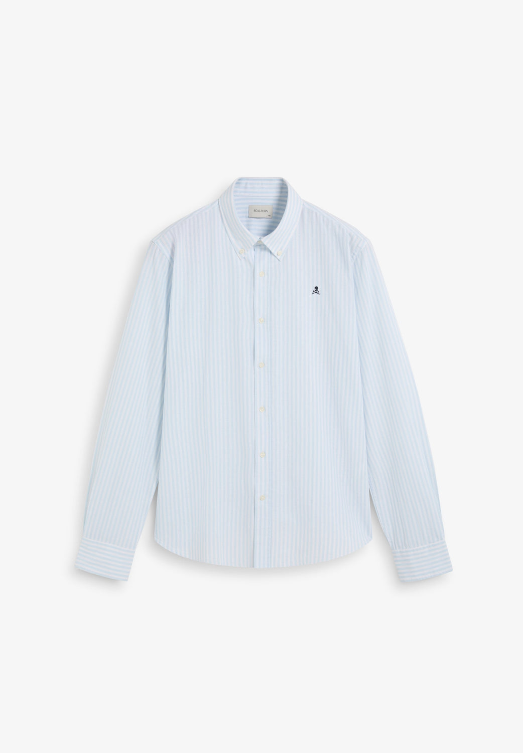 Chemise oxford en mélange de coton et lin. Imprimé rayé. Fermeture boutonnée devant. Skull contrastant brodé sur la poitrine