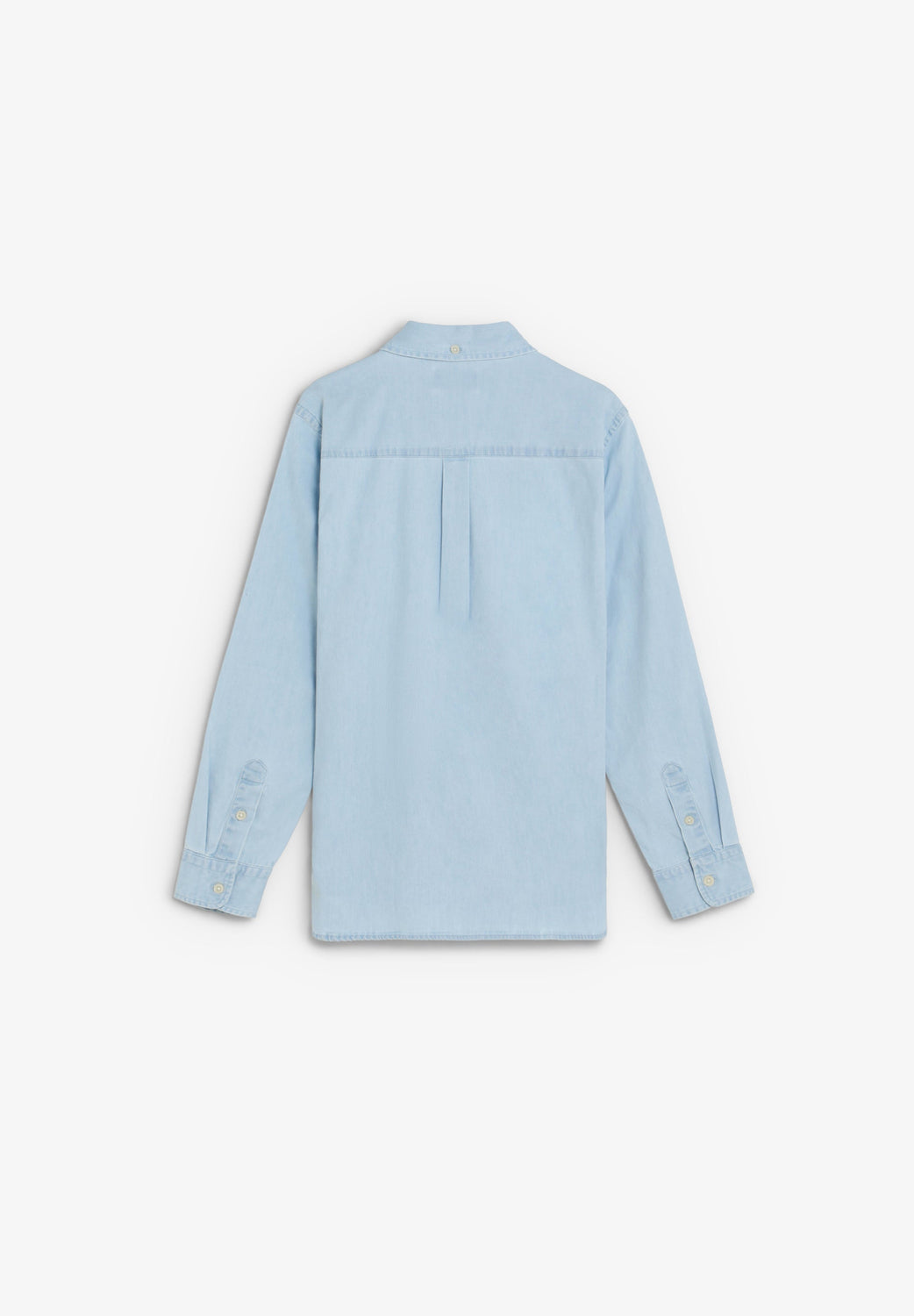 Chemise en denim confectionnée en mélange de coton. Coupe droite. Col boutonné. Manches longues à poignets boutonnés. Skull brodé sur la poitrine. Fermeture boutonnée.