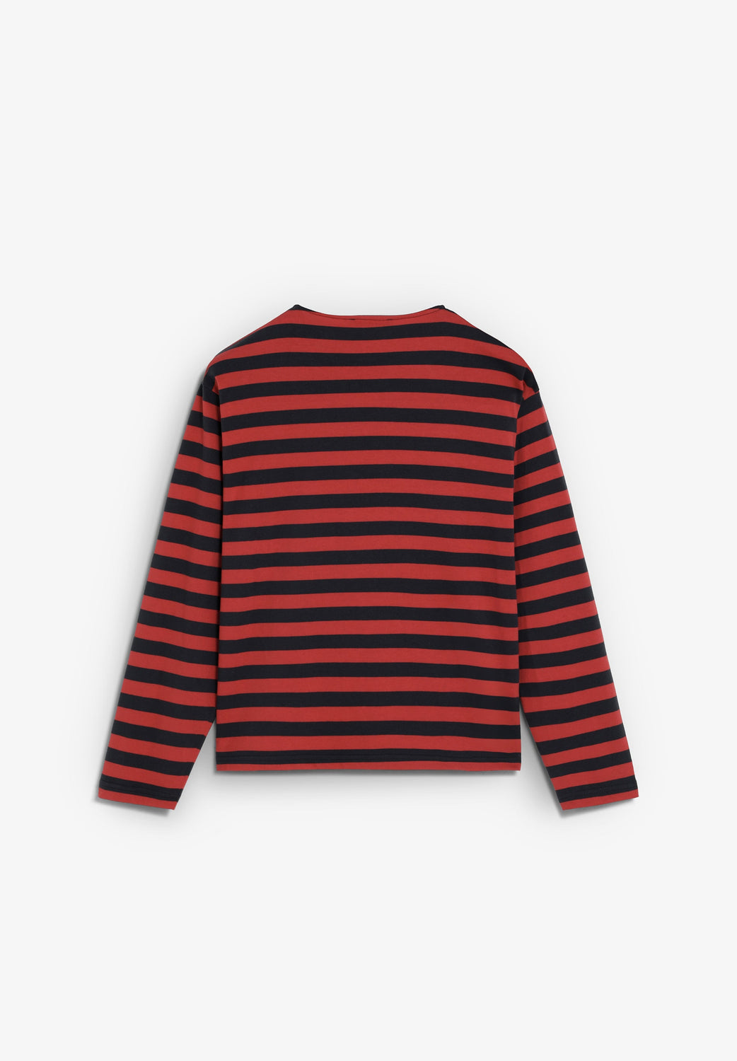 T-shirt à rayures 100 % coton BCI. Coupe droite, col rond et manches longues. Écusson avec logo sur le devant bas.