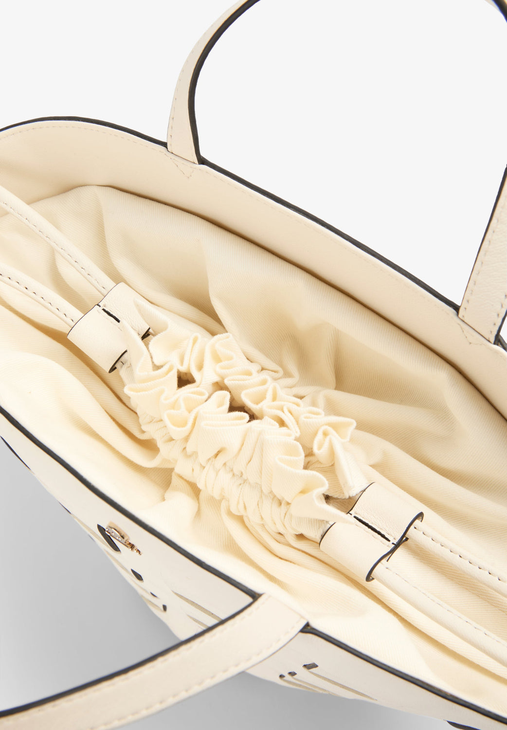 Sac 100 % cuir. Motif géométrique en relief. Double poignée. Doublure intérieure en coton.