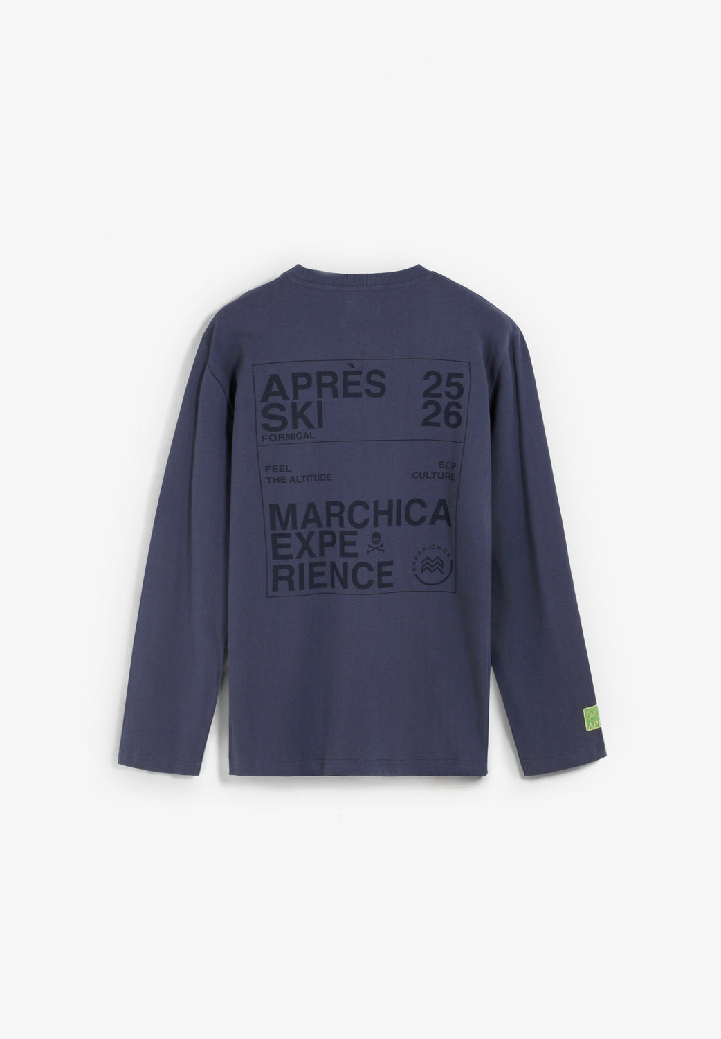 T-shirt confectionné en 100 % coton BCI. Manches longues. Col rond. Imprimé au dos. Broderie ton sur ton sur la poitrine. Étiquette sur la manche droite.