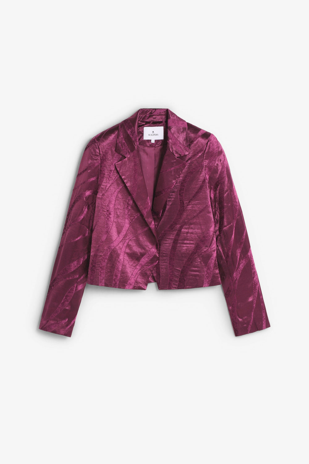 Veste cropped à motif jacquard. Coupe droite, col à revers. Manches longues.