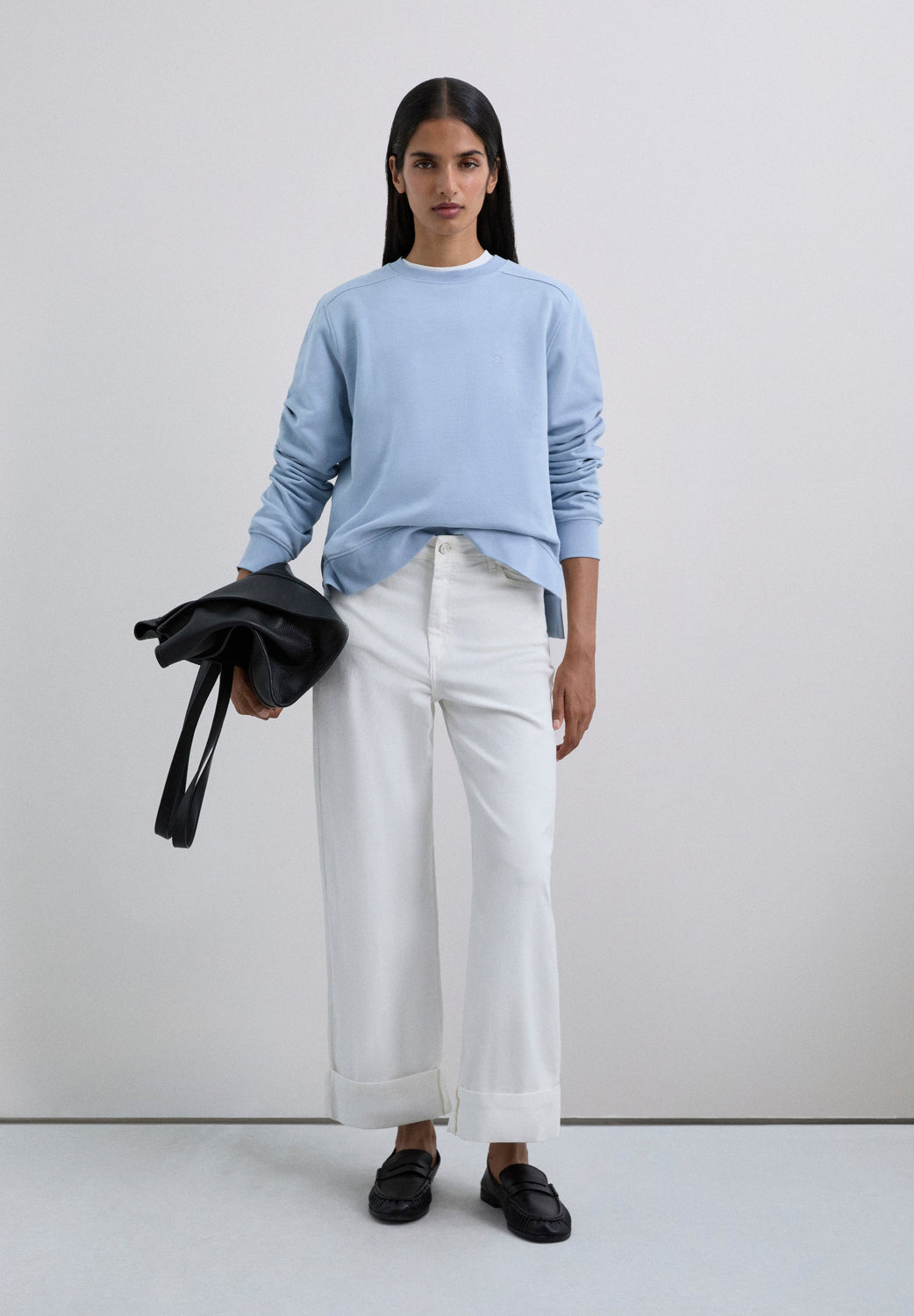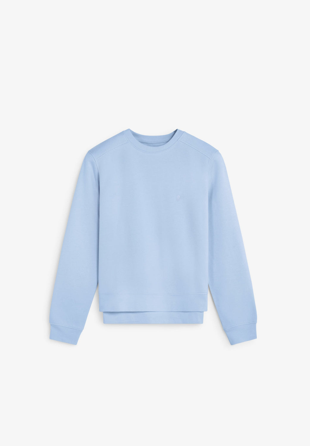 Sweat 100 % coton BCI. Coupe droite, col rond et manches longues avec bord de côte aux poignets. Bas asymétrique, plus long dans le dos. Skull brodé sur la poitrine.