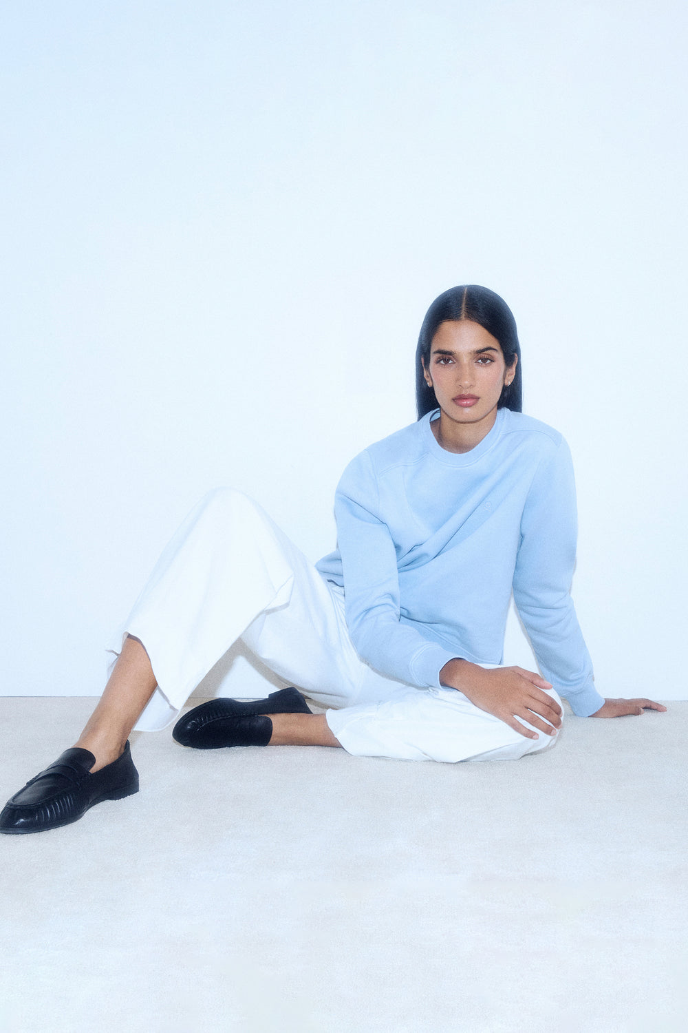 Sweat 100 % coton bio. Coupe droite, col rond et manches longues avec bord de côte aux poignets. Bas asymétrique, plus long dans le dos. Skull brodé sur la poitrine.
