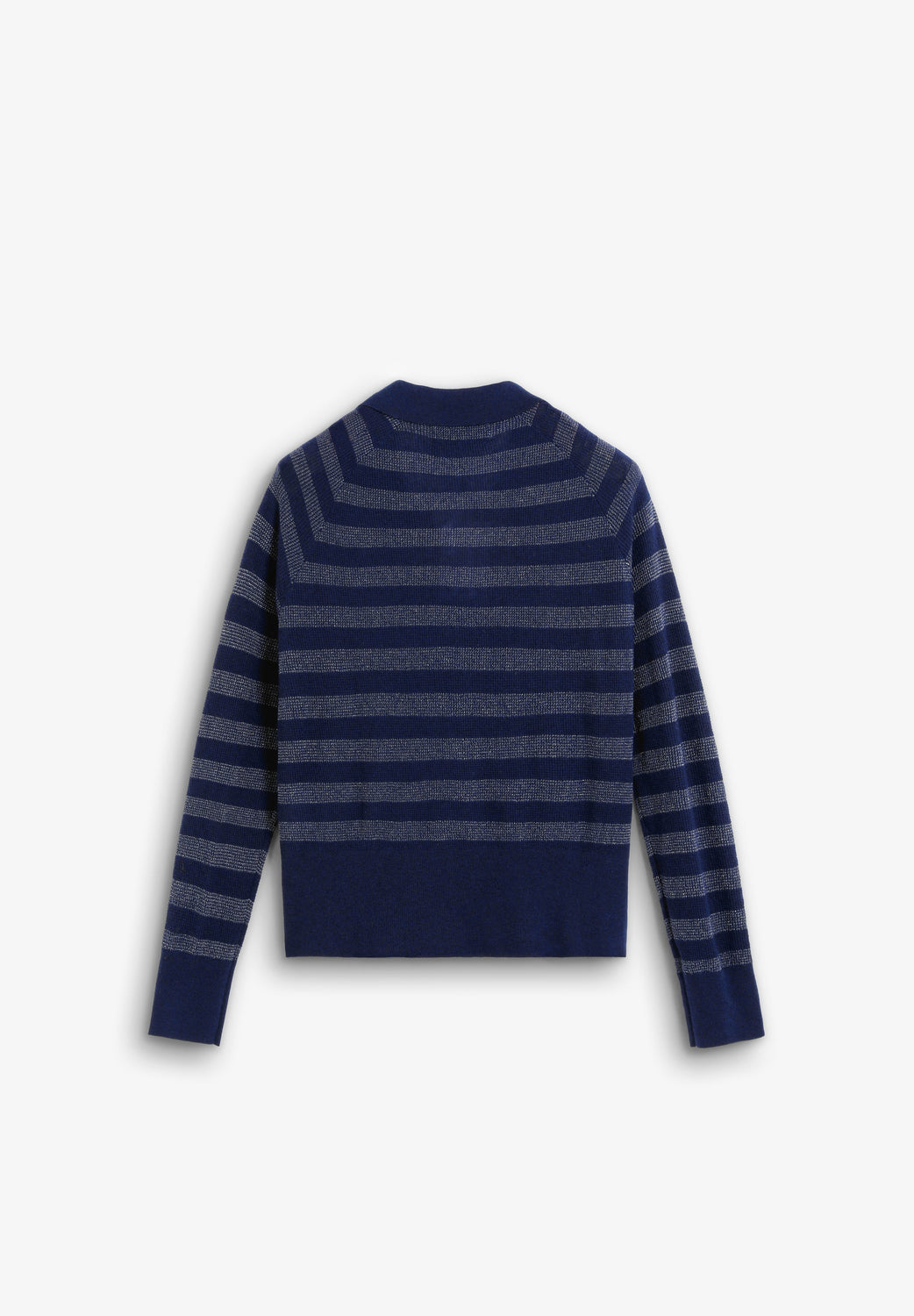 Pull style polo, confectionné dans un mélange de laine. Coupe droite. Motif rayures en fil métallisé. Col polo. Manches longues avec poignets en bord-côte.