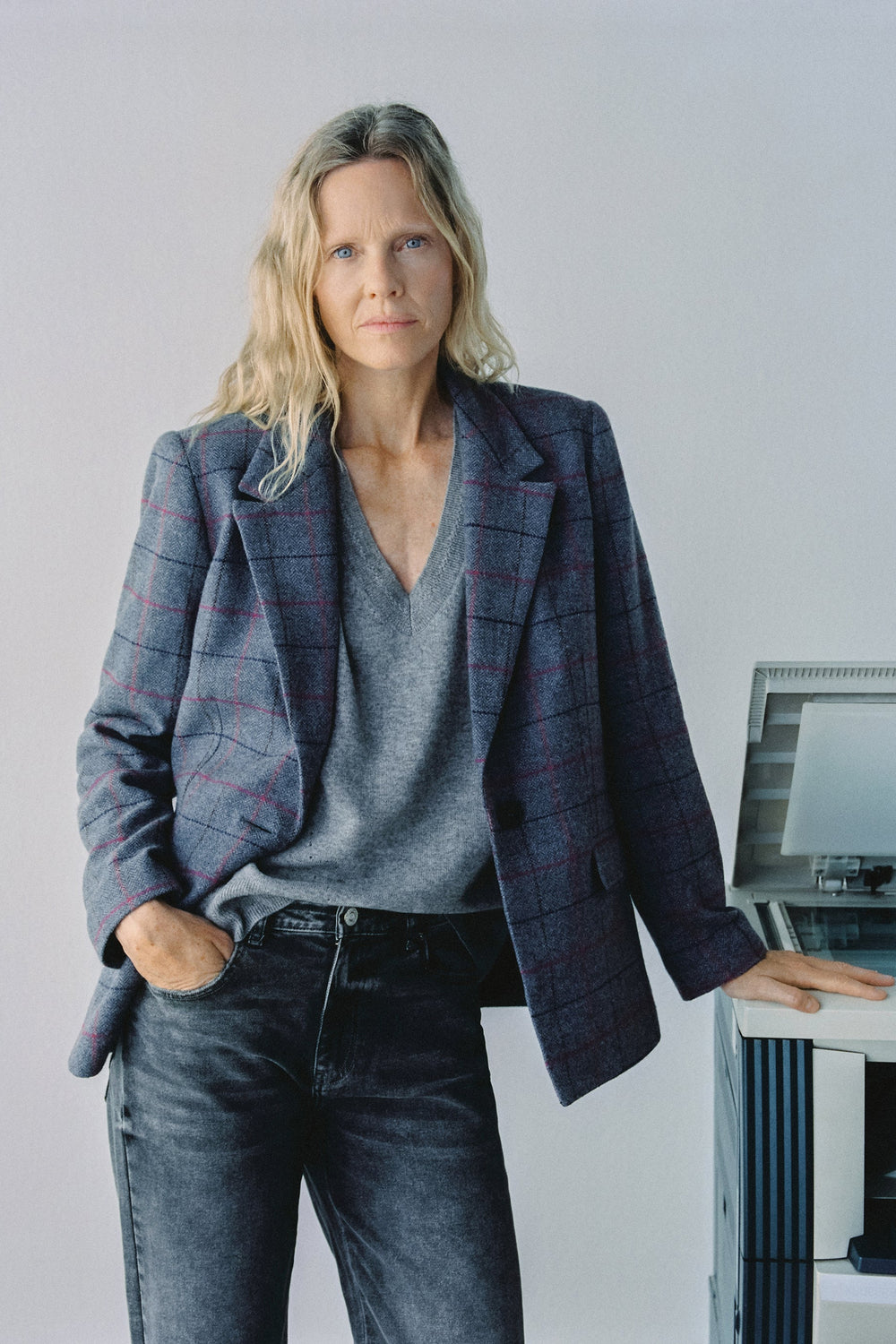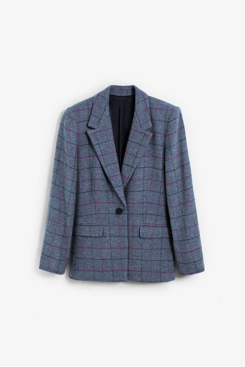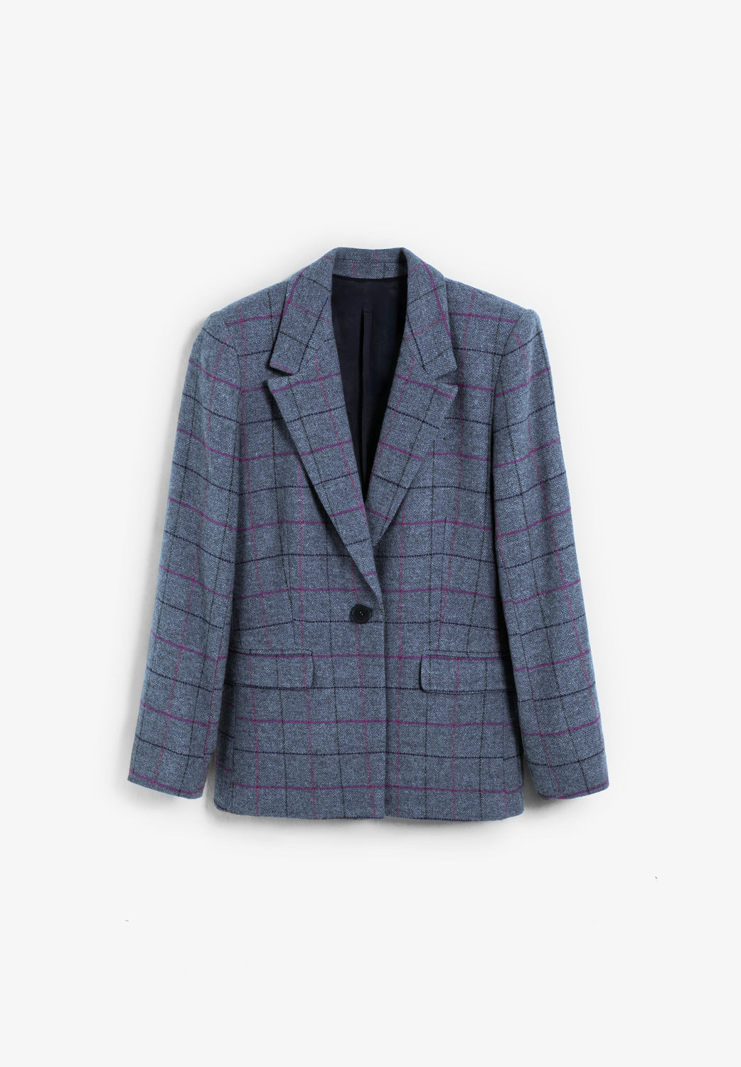Veste en laine. À carreaux. Épaulettes structurées. Fermeture boutonnée devant. Deux poches à rabat devant.