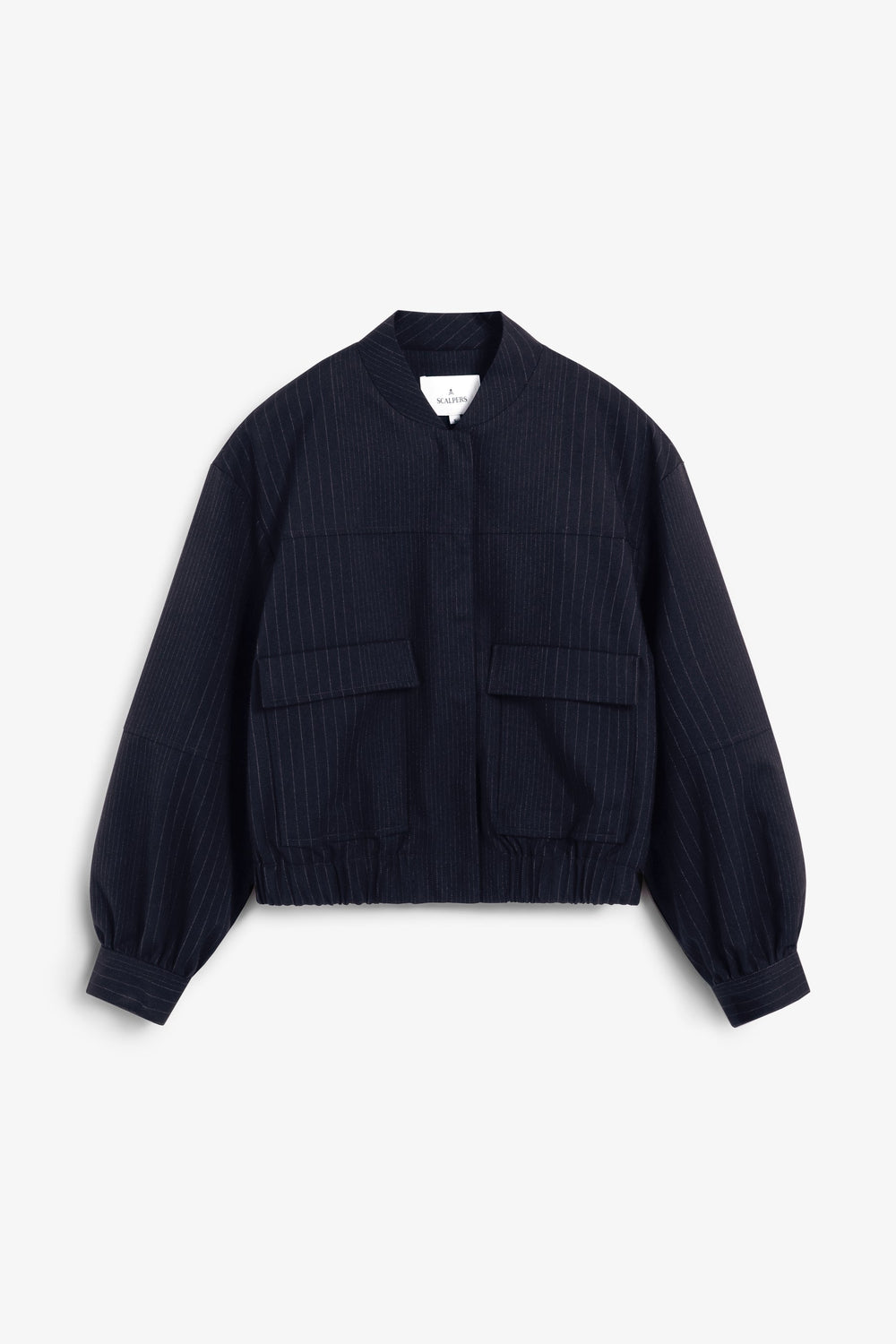 Veste bomber à rayures tennis. Col montant coupé en biais. Manches longues. Taille légèrement élastique. Fermeture éclair et boutons devant. Deux poches à rabat devant.