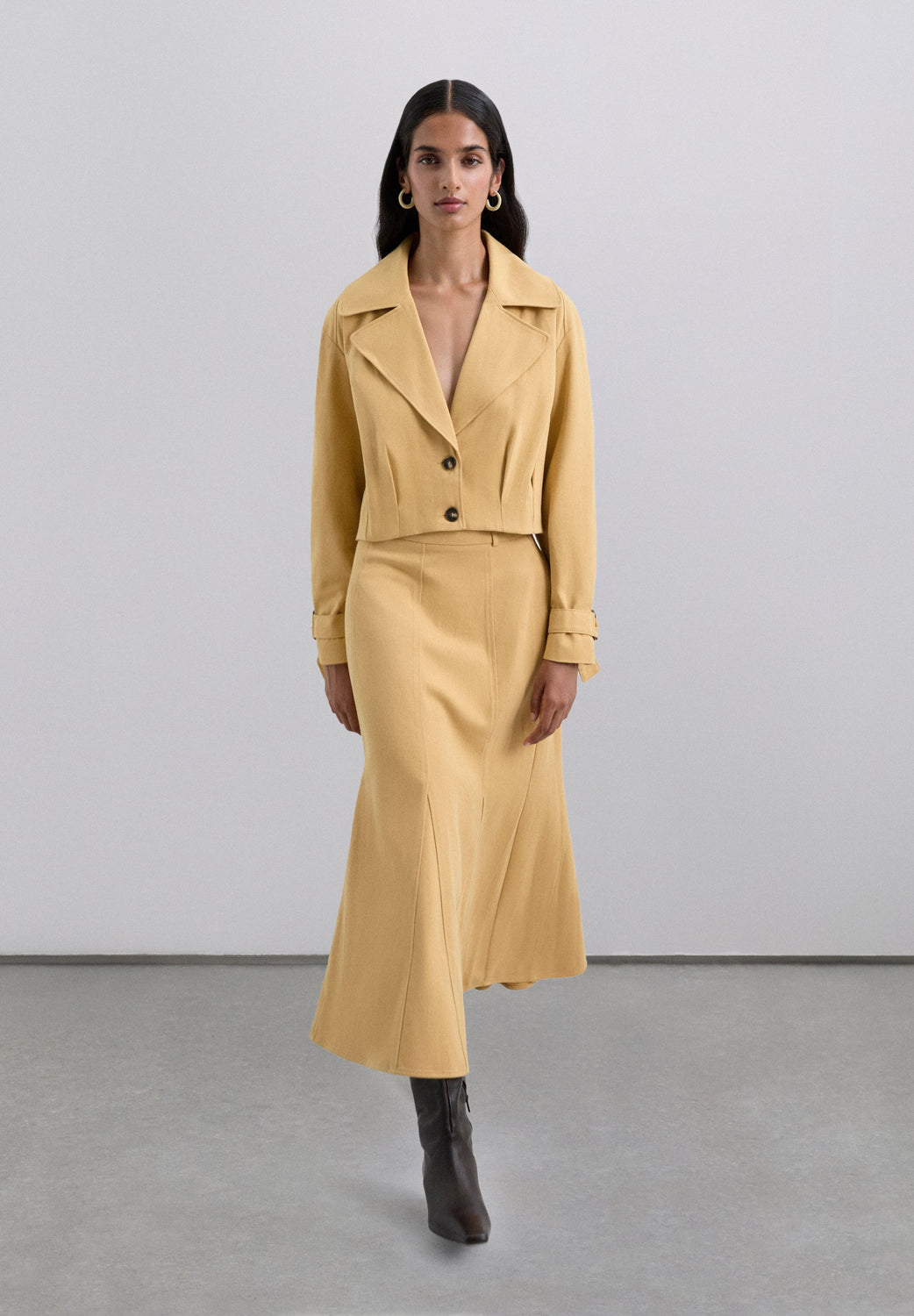 Veste courte légère 100 % coton avec revers en pointe et fermeture à boutons sur le devant. Manches longues à poignets boutonnés.