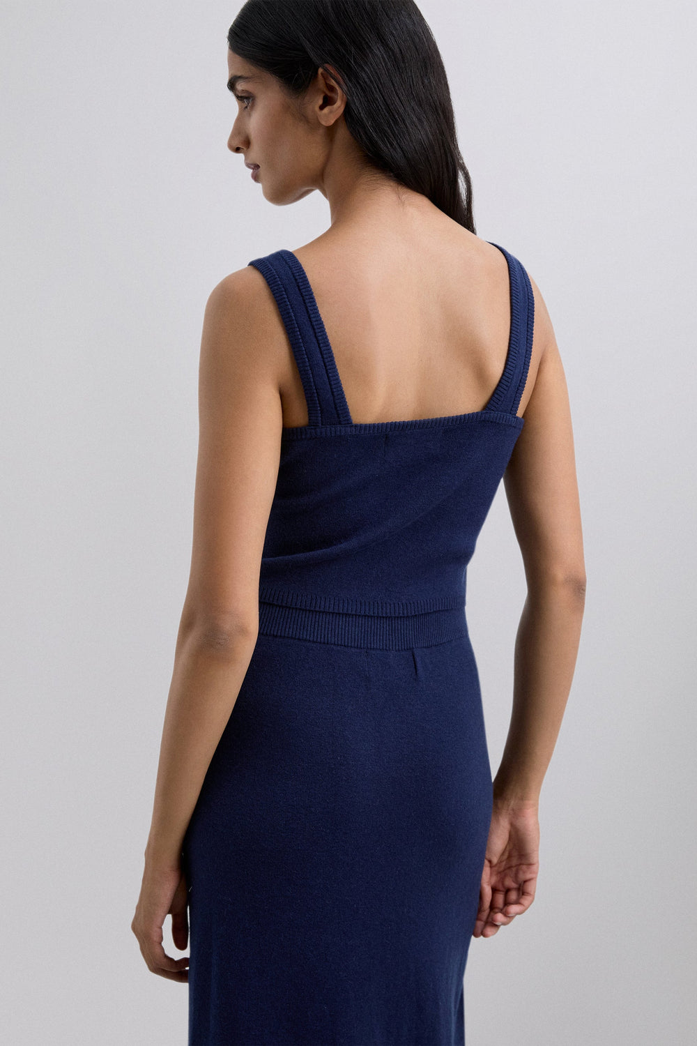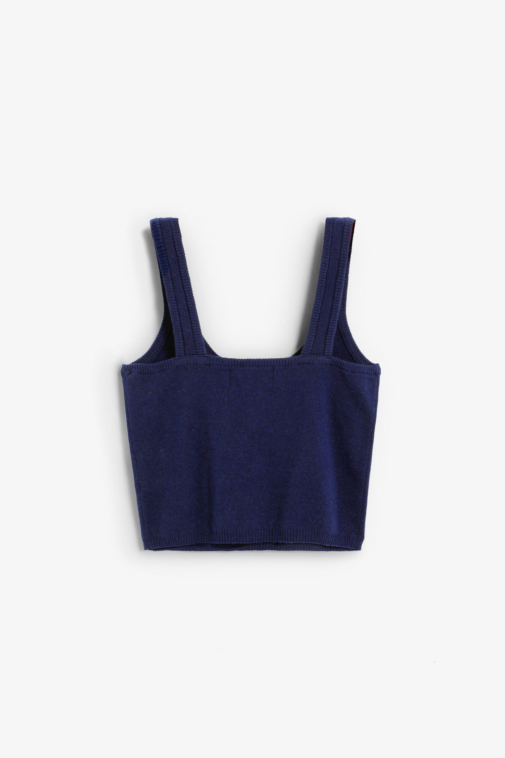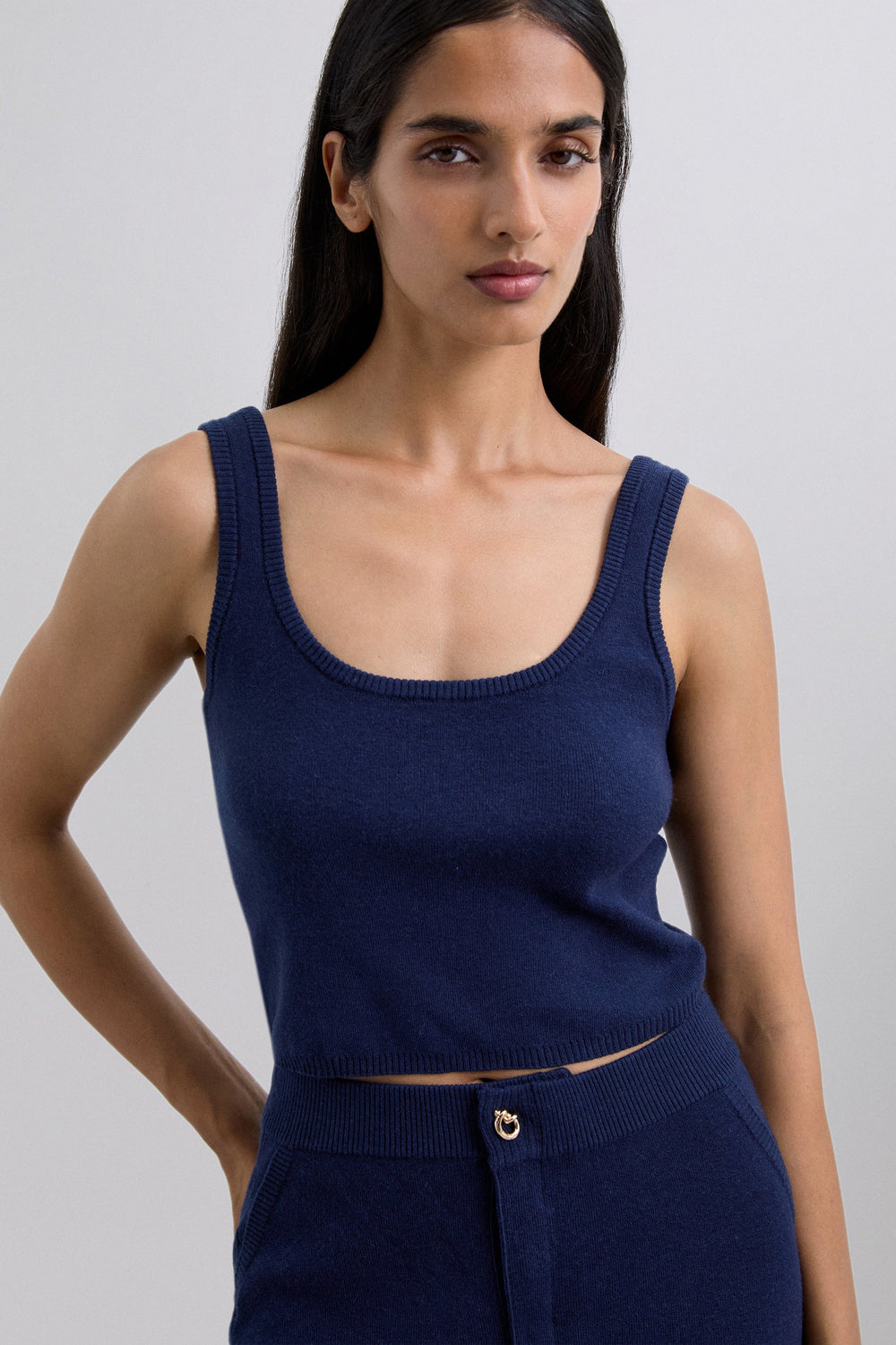 Top confectionné dans un mélange de coton, viscose et laine. Coupe slim, cropped, col rond et bretelles larges. Liseré sur le décolleté.