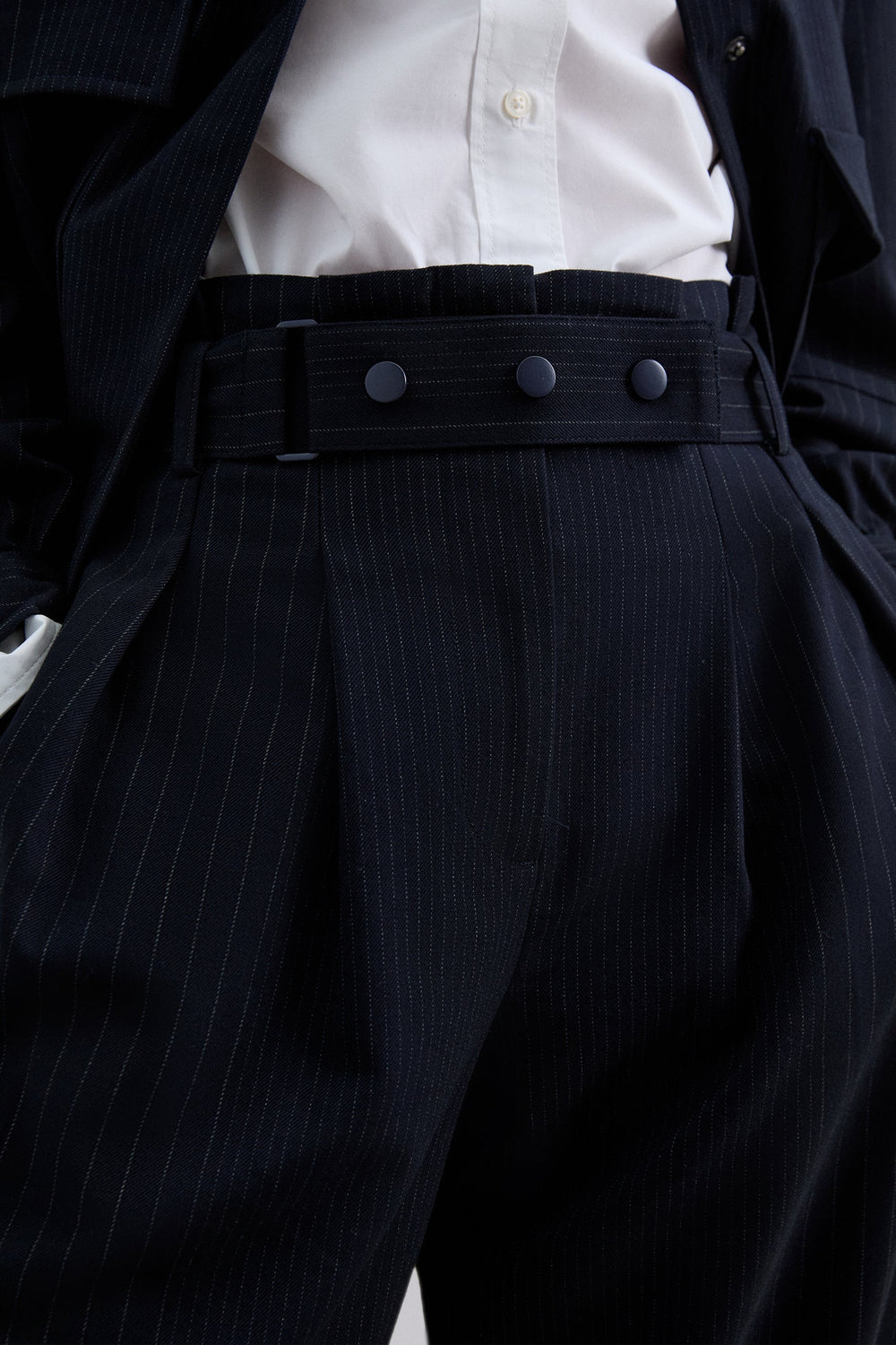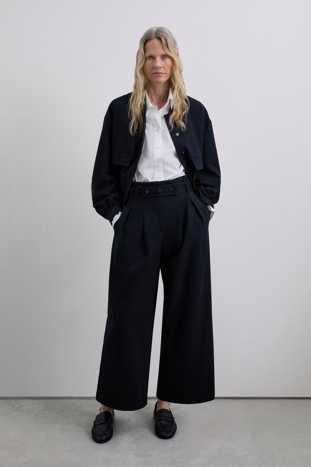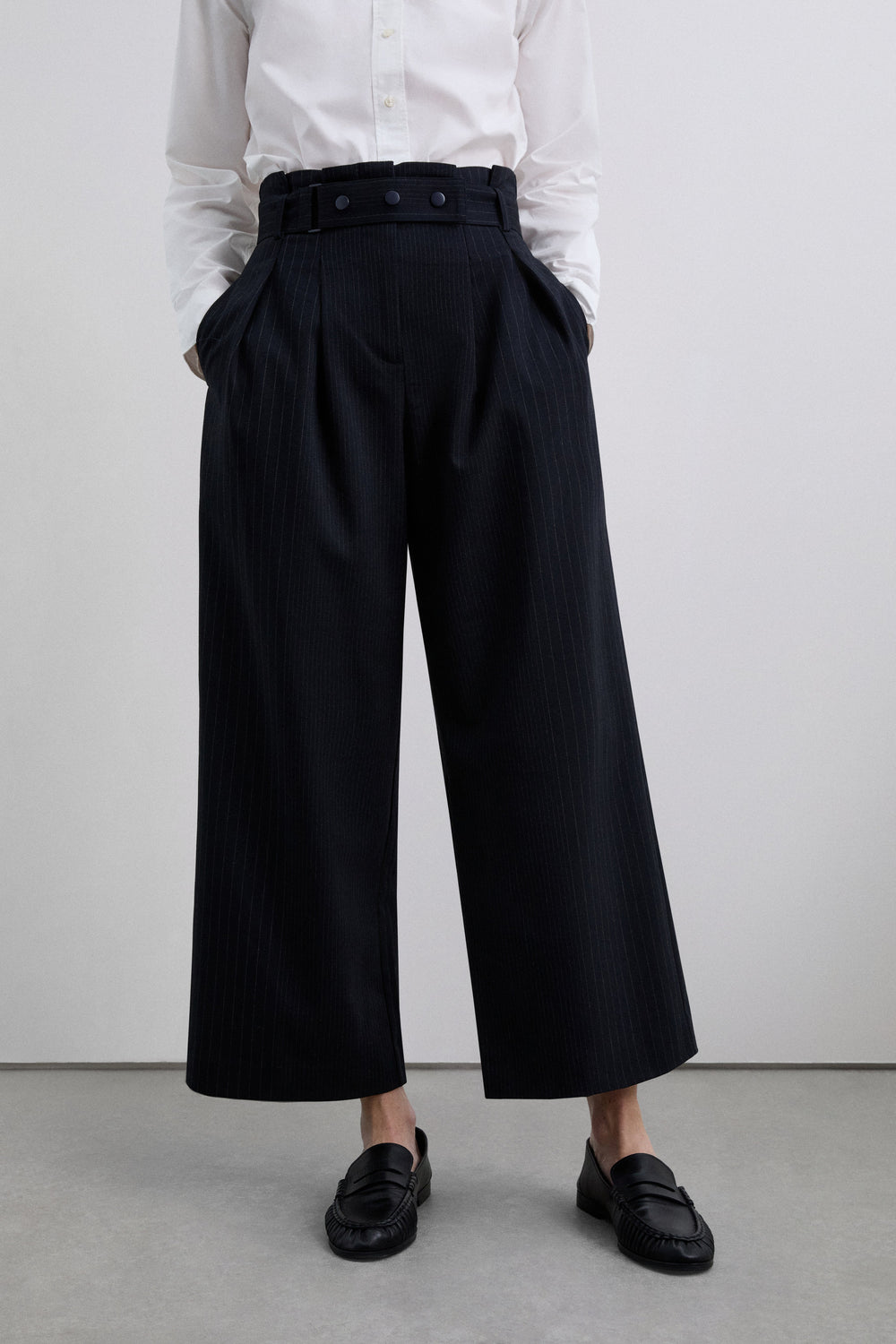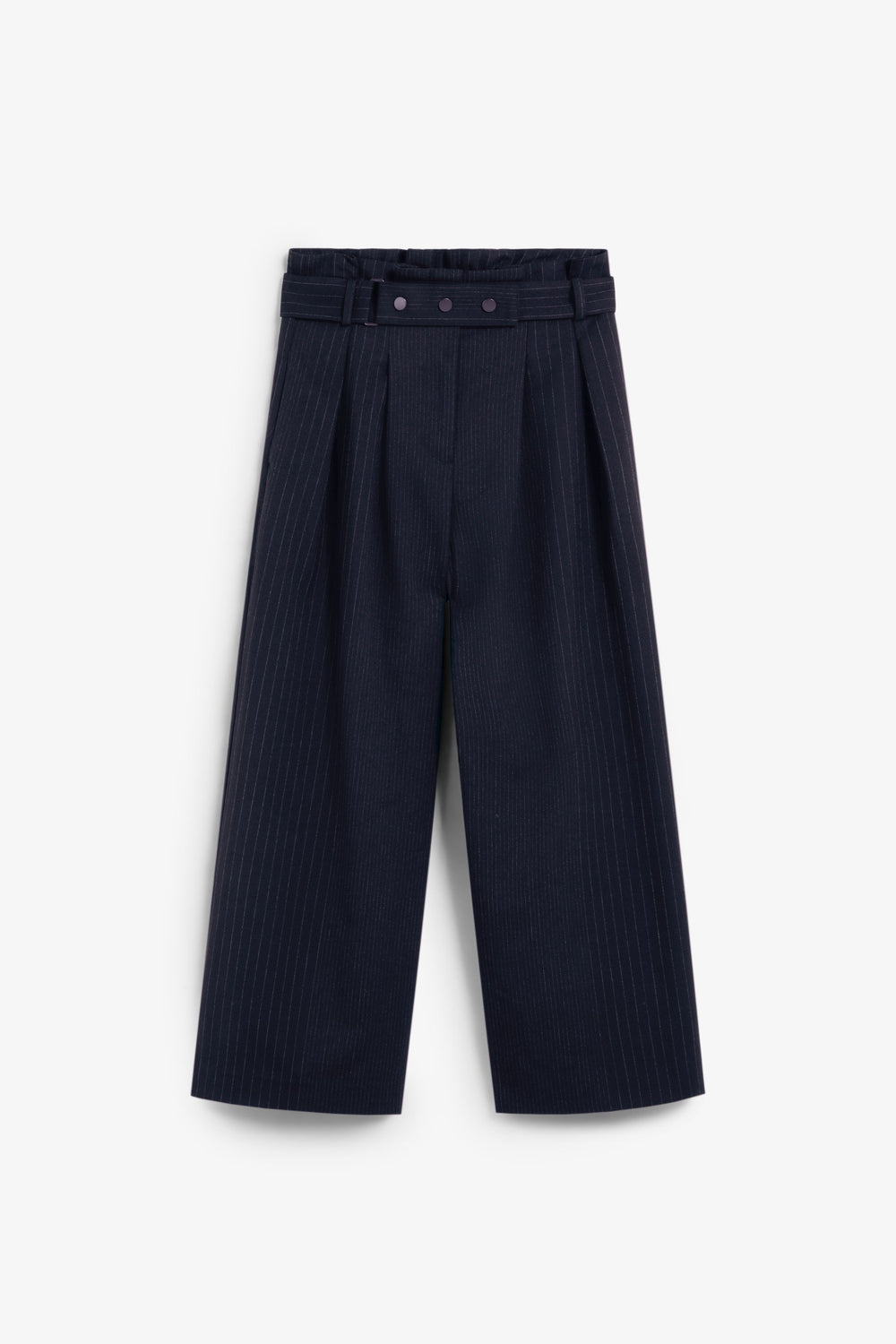 Jupe-culotte. Taille haute. Passants de ceinture. Fermeture éclair cachée sous une patte avec agrafe et bouton. Deux poches sur les côtés.