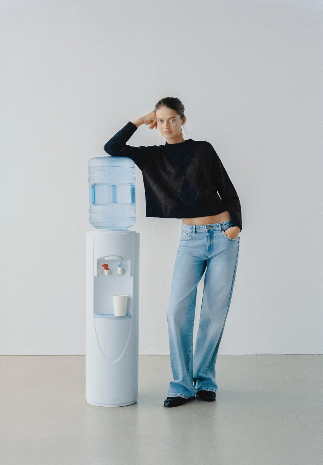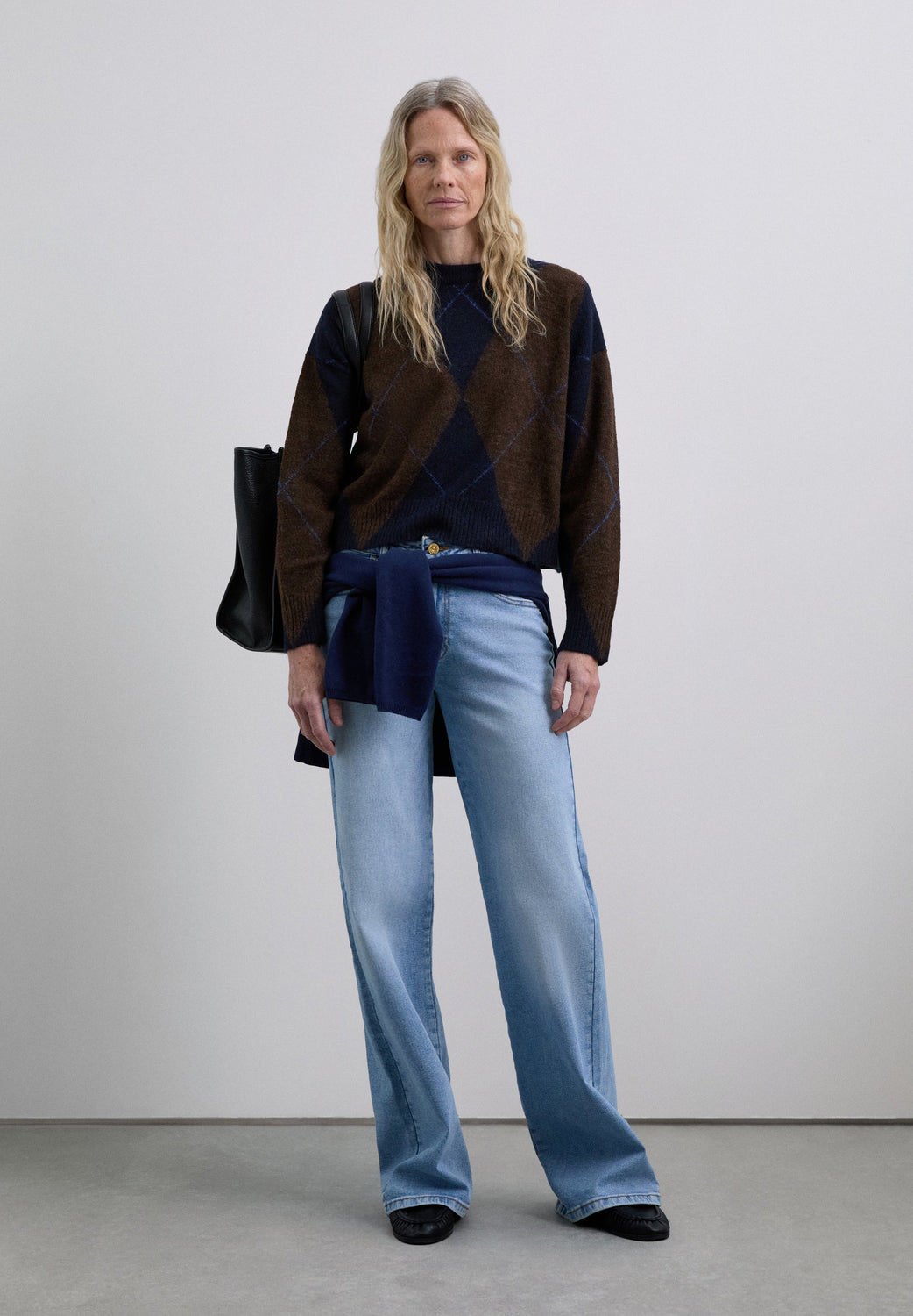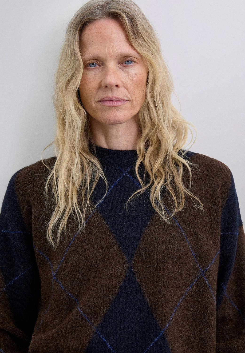 Pull confectionné dans un mélange de laine. Motif en losanges. Coupe droite. Col rond en bord-côte Manches longues avec poignets en bord-côte.