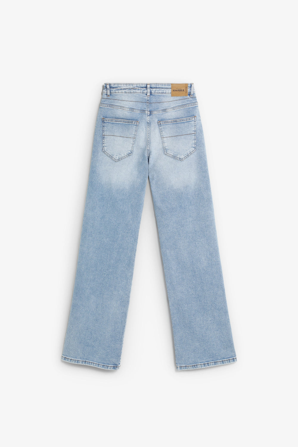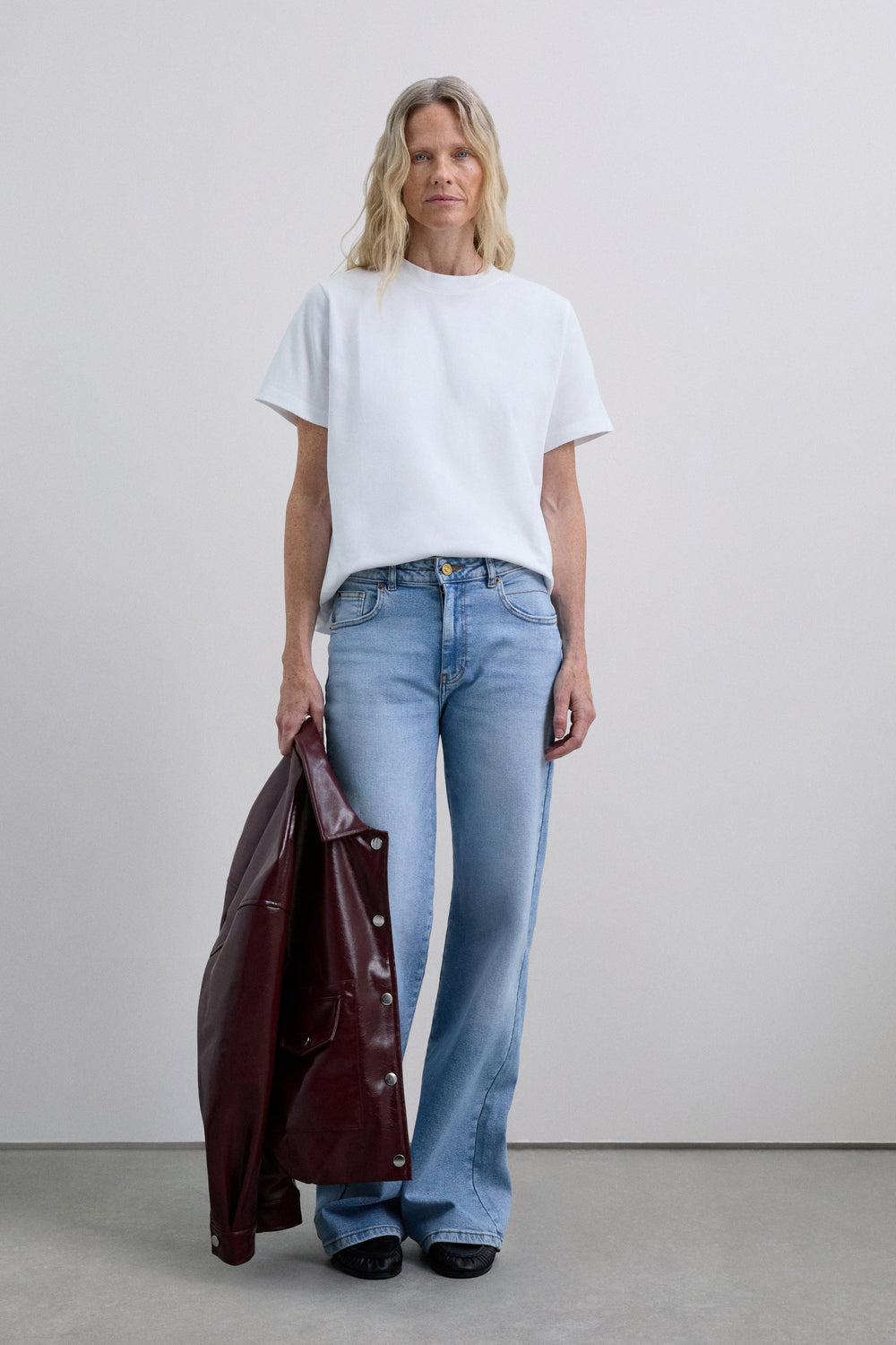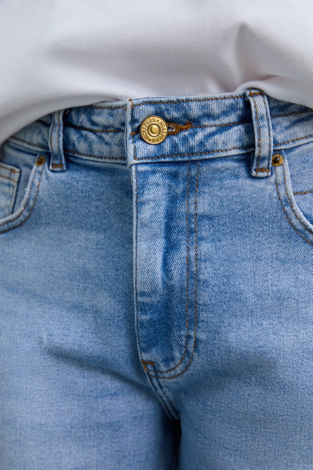 Mid-rise jeans with belt loops. Full length, front zip and button fastening. Back and front pockets.
