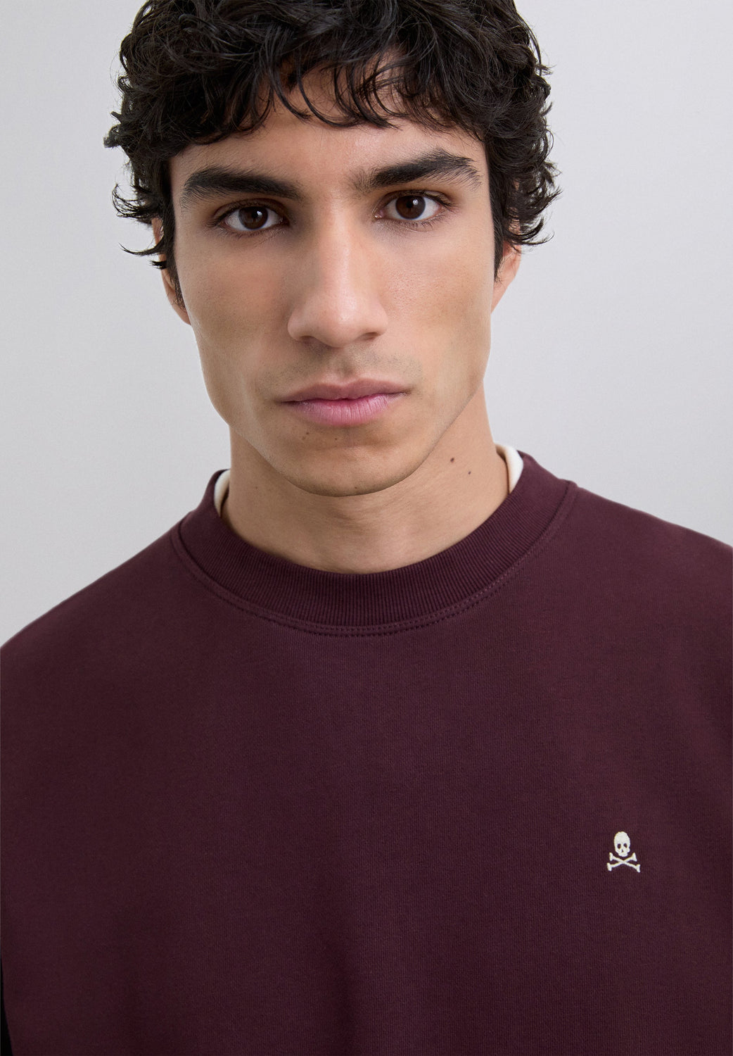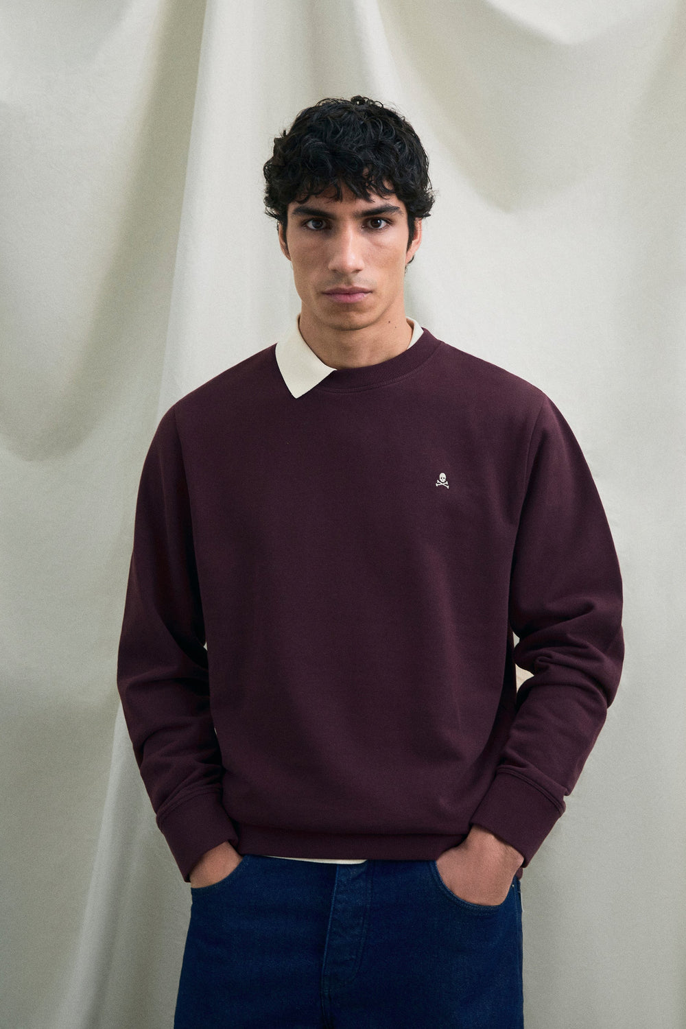 Sweat 100 % coton BCI. Coupe droite. Manches longues. Col rond, manches et taille à finition bord-côte. Skull brodé contrastant.