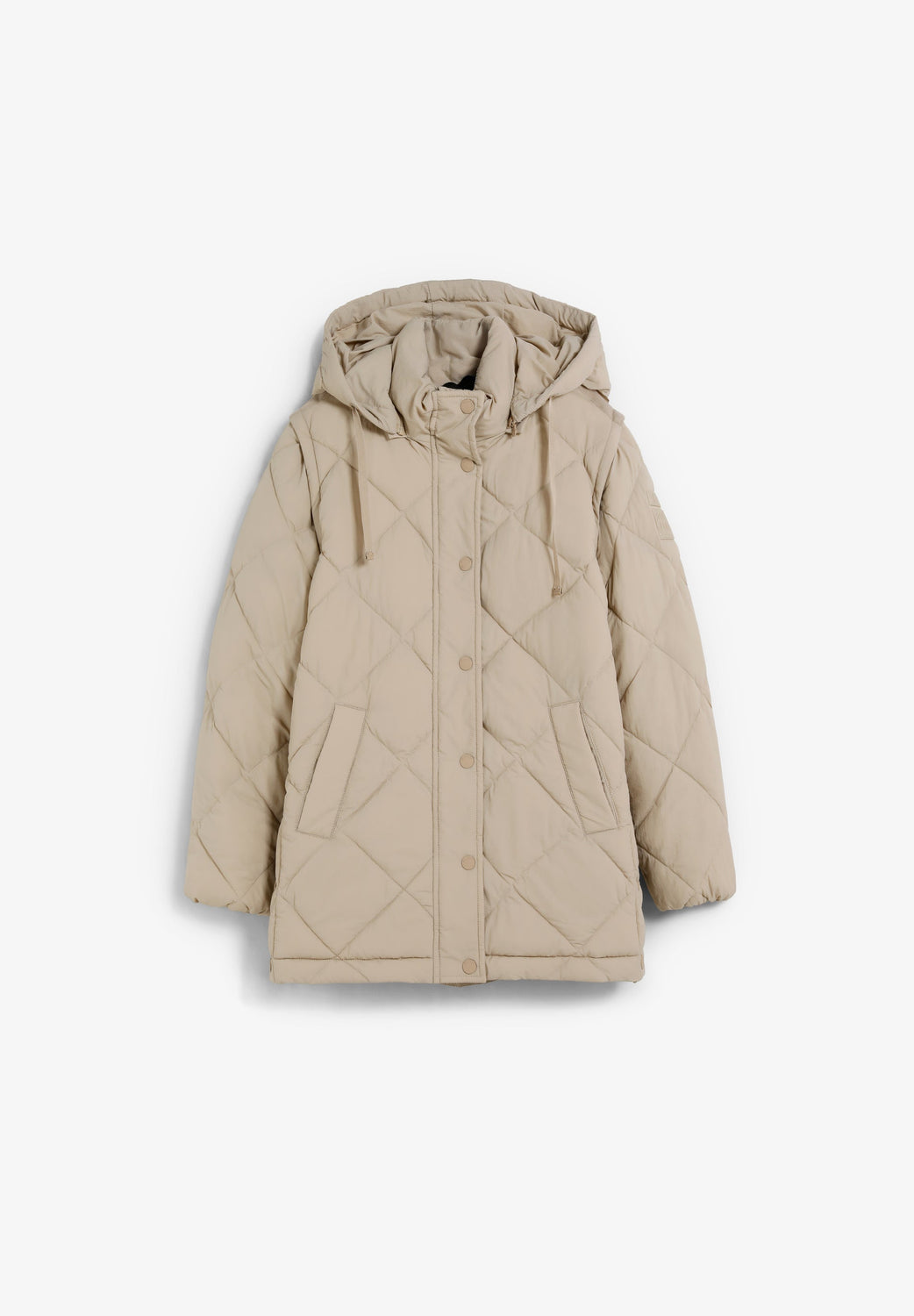 Doudoune. Capuche et manches amovibles. Fermeture éclair sur le devant, dissimulée sous une patte à boutons-pression. Poches sur les côtés. Intérieur en tissu recyclé. Logo dans le dos.