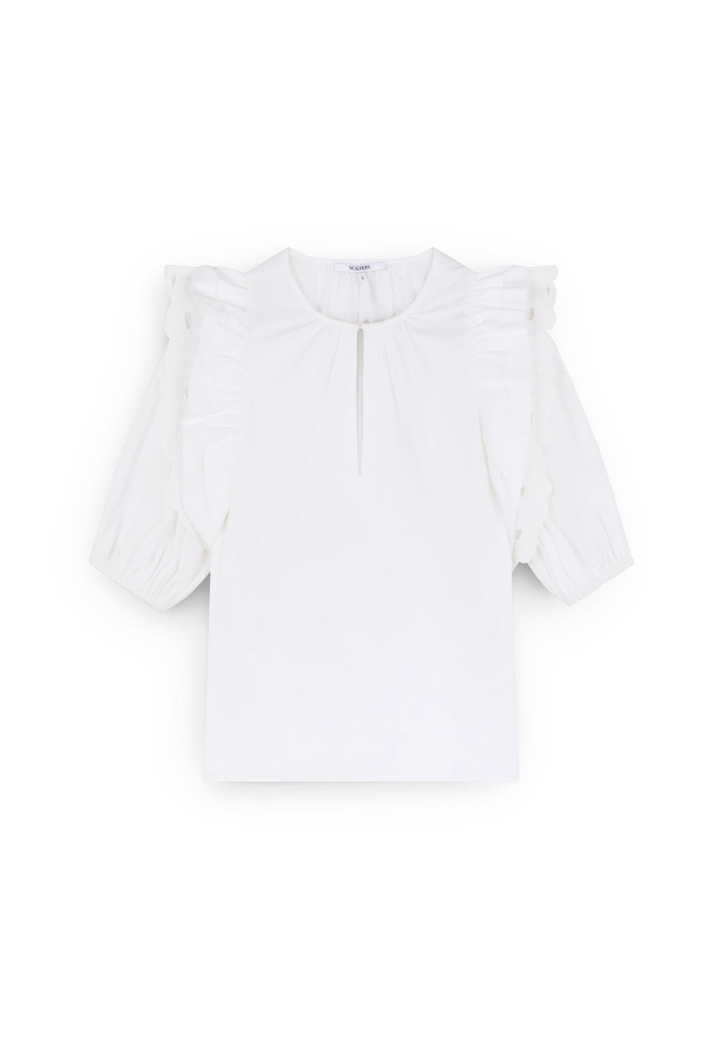 Top blanc 100 % coton BCI. Coupe regular, doublure, col rond et manches bouffantes.