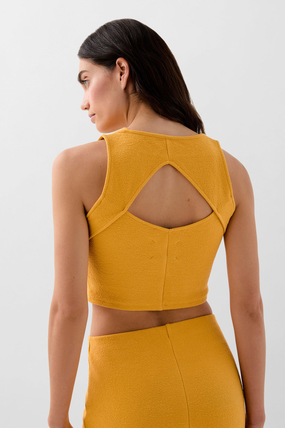 Ce top est issu de la collaboration avec Scalpers et fait partie de la collection ROBIN x SCALPERS. Top en coton biologique BCI. Légèrement extensible. Découpé dans le dos.