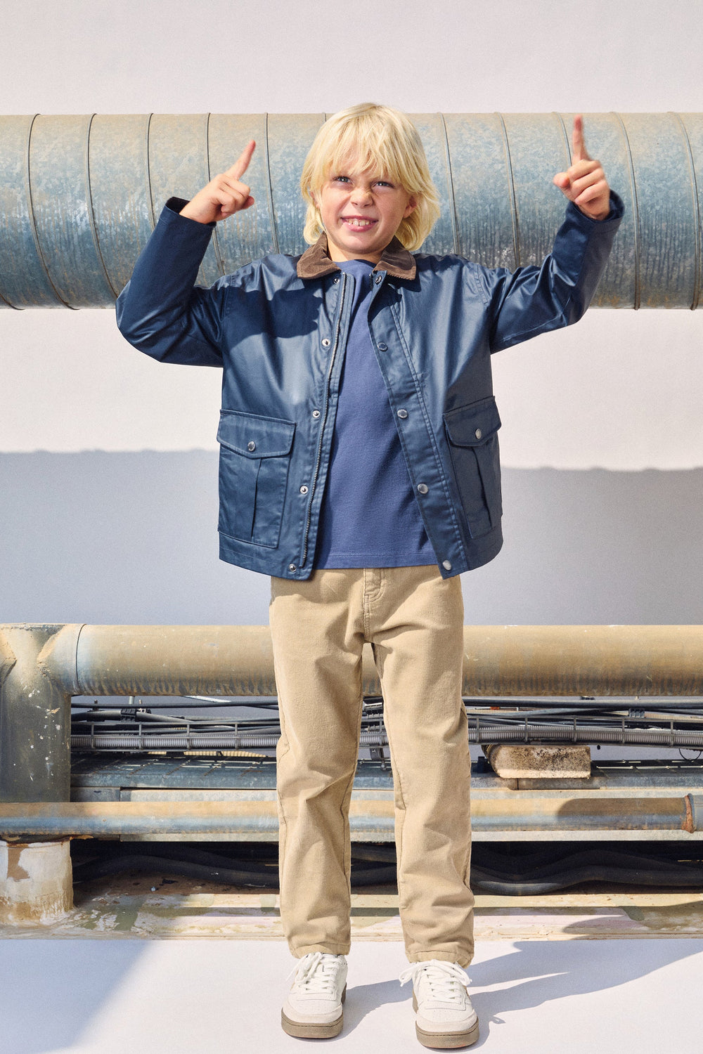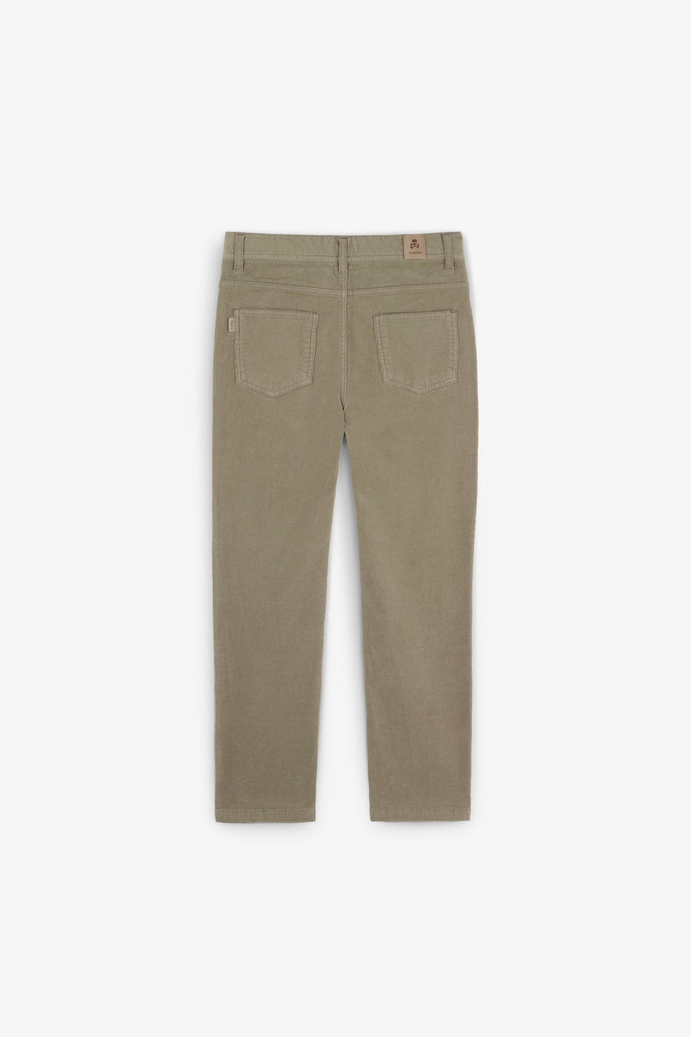Pantalon à cinq poches confectionné en coton BCI légèrement extensible. Coupe droite. Bouton et fermeture Éclair. Passants de ceinture.