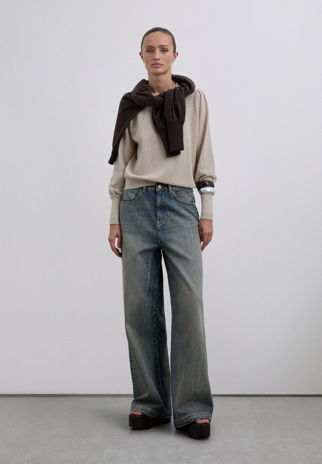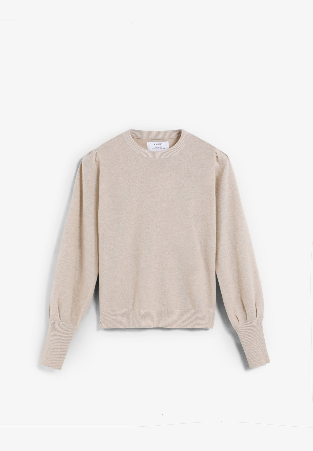 Pull confectionné dans un mélange de laine. Coupe droite. Col rond. Manches longues légèrement bouffantes à poignets finition bord-côte.