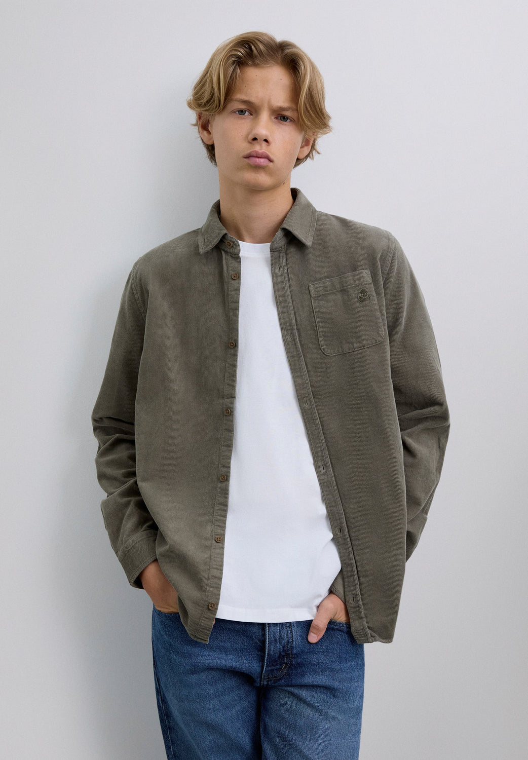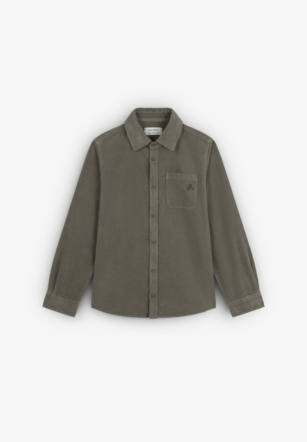 Chemise en velours côtelé confectionnée en 100 % coton BCI. Coupe droite. Fermeture boutonnée. Manches longues à poignets boutonnés. Skull ton sur ton brodé sur la poitrine.