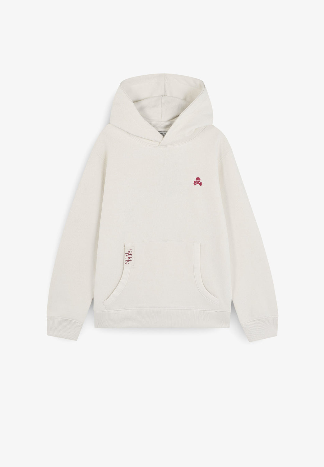 Sweat à capuche 100 % coton BCI. Manches longues. Skull contrastant brodé sur la poitrine et motif avec logo dans le dos. Poche kangourou devant avec logo contrastant. Taille et poignets en bord-côte.