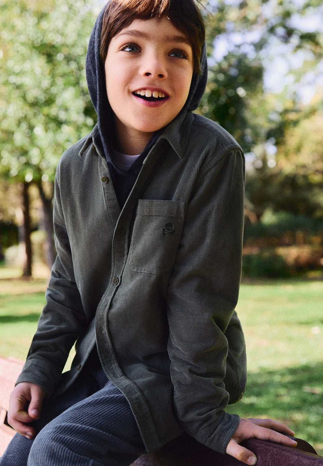 Chemise en velours côtelé confectionnée en 100 % coton BCI. Coupe droite. Fermeture boutonnée. Manches longues à poignets boutonnés. Skull ton sur ton brodé sur la poitrine.