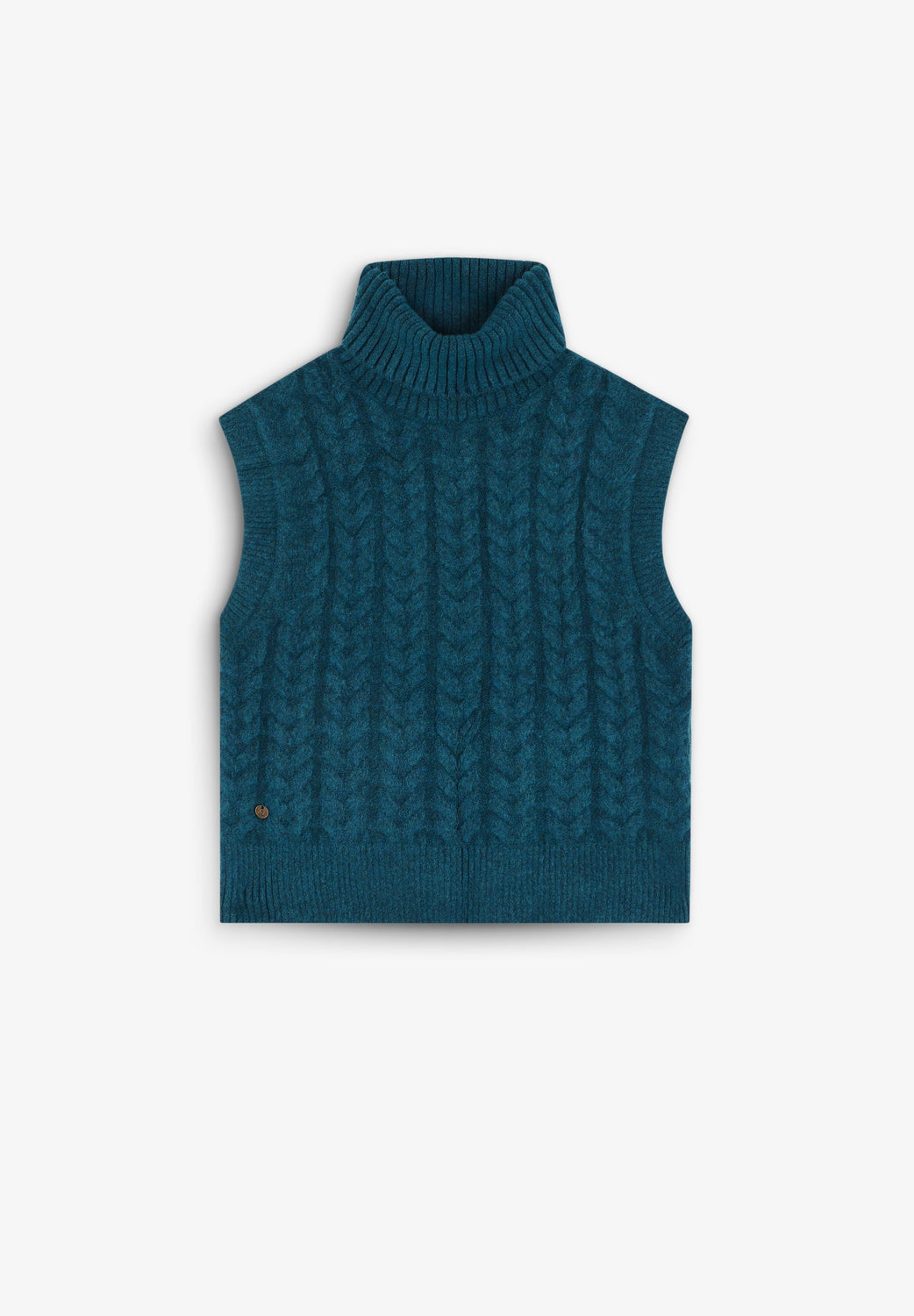 Pull sans manches en maille. Col roulé. Finitions en bord-côte. Plaque en métal avec skull.