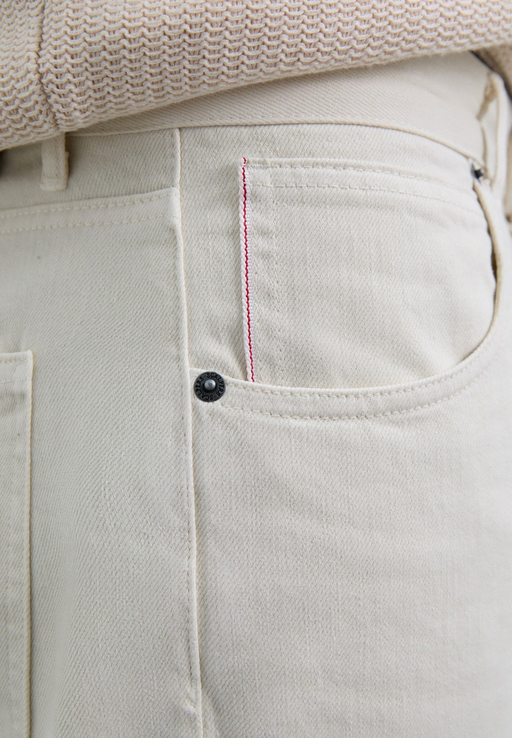 Pantalon 100 % coton. Coupe droite. Bouton et fermeture Éclair. Poches sur les côtés et à l’arrière. Passants de ceinture.