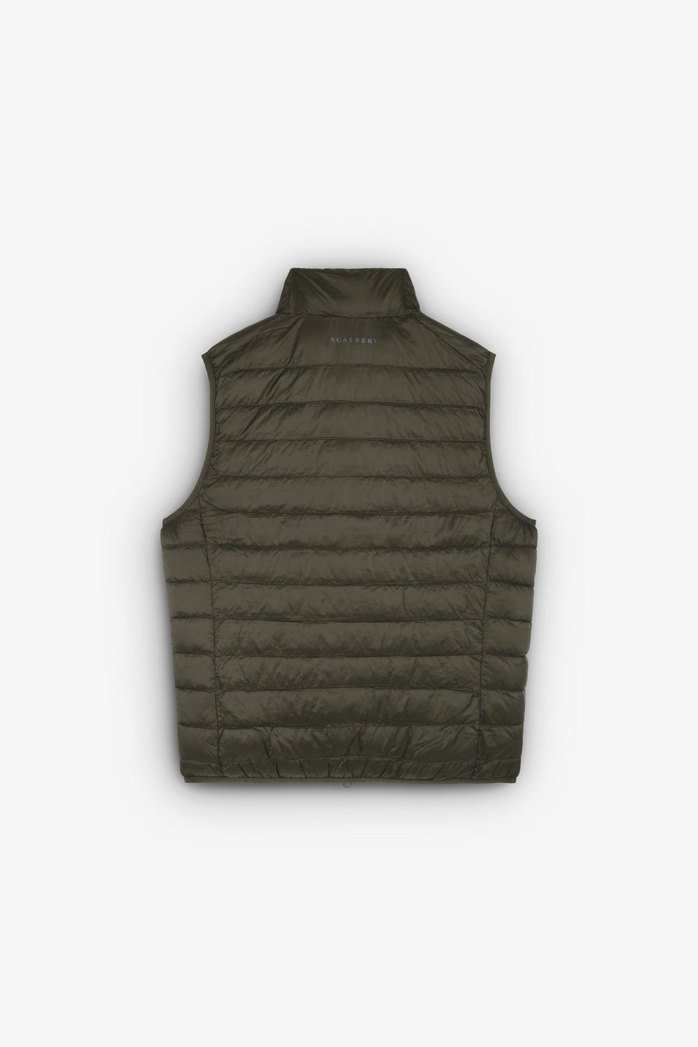 Chaleco acolchado confeccionado en tejido de nailon y poliéster reciclado water repellent.
