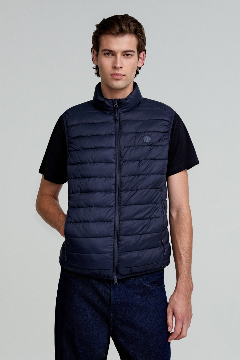 - Chaleco acolchado confeccionado en tejido de nailon y poliéster reciclado water repellent. Corte Slim Fit, cuello subido y cierre con cremallera de doble carro.