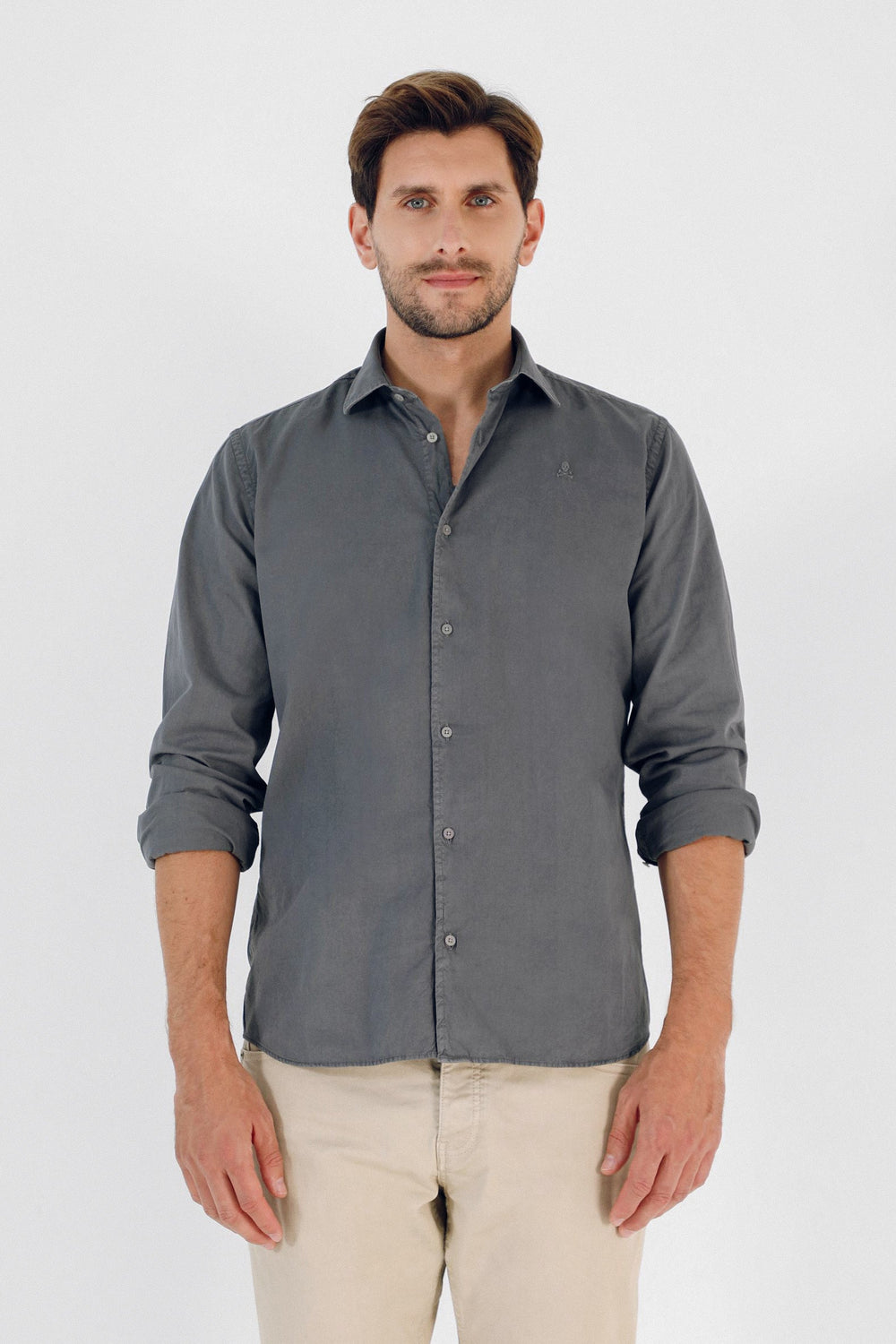 Shirt made of 100% cotton. Regular fit, Italian collar and button fastening without placket. Long sleeves with barrel cuffs. Embroidered skull detail on the chest.