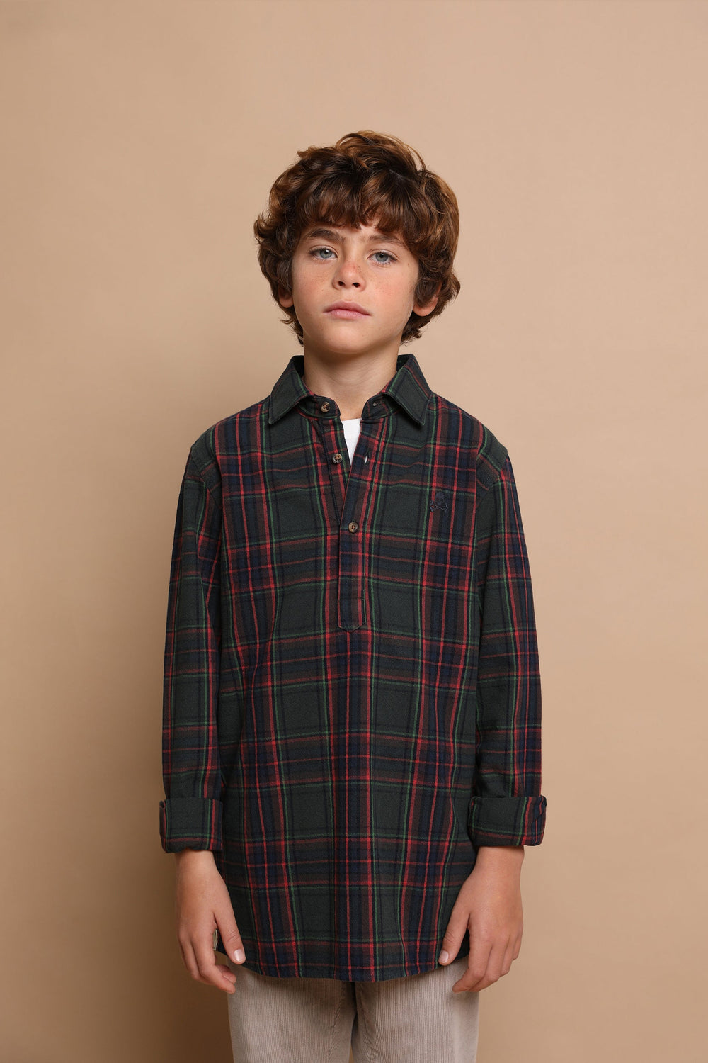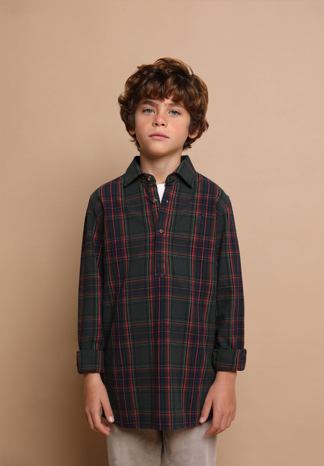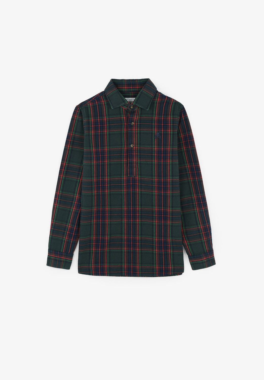 Tartan check polo shirt made from 100% organic cotton. Regular fit, Kent collar and long sleeves.