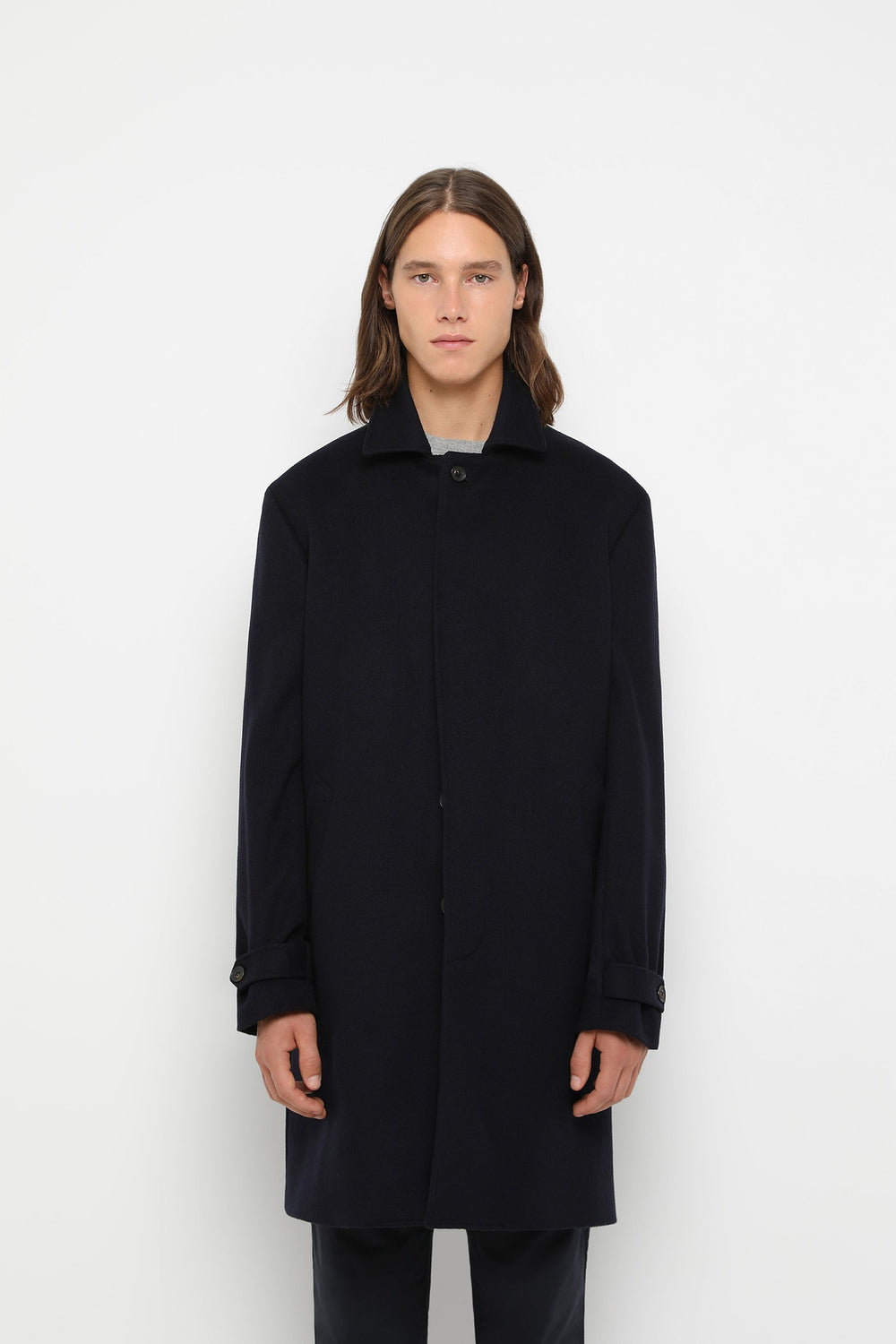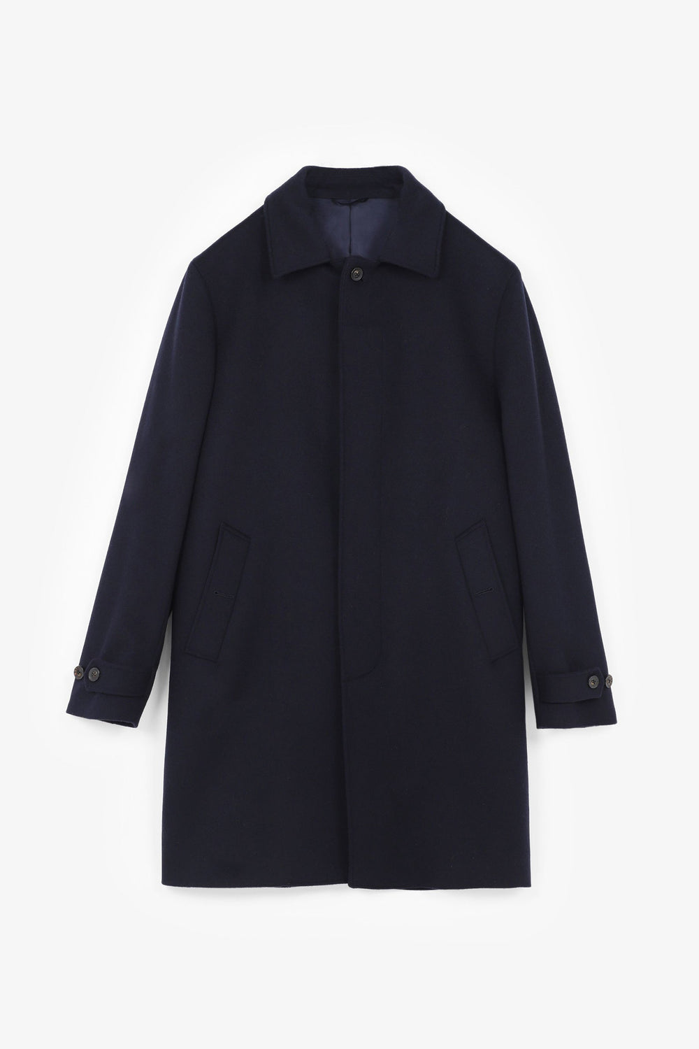 Classic coat made of a wool and cashmere blend. Regular fit, button fastening, lapel collar. Long sleeves with buttoned cuffs. Side pockets.