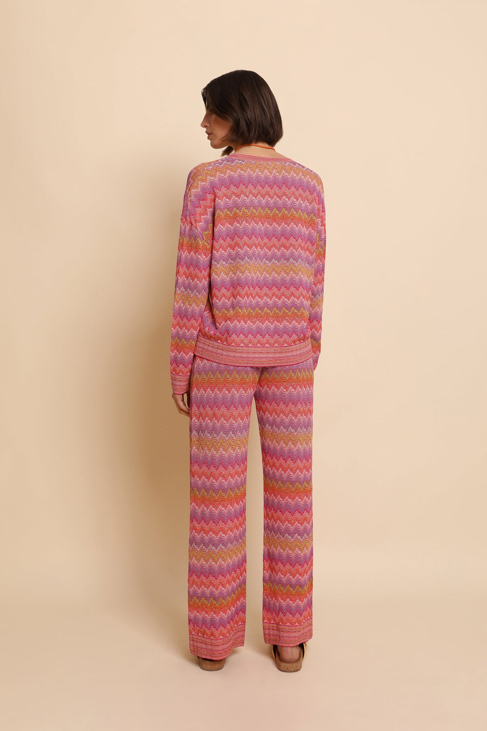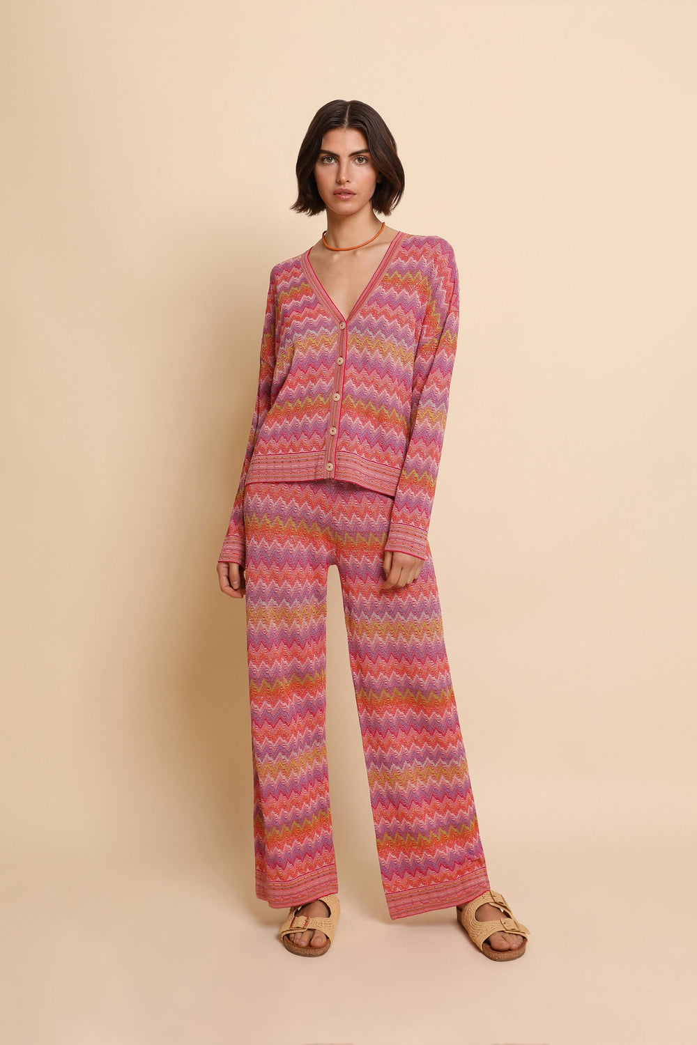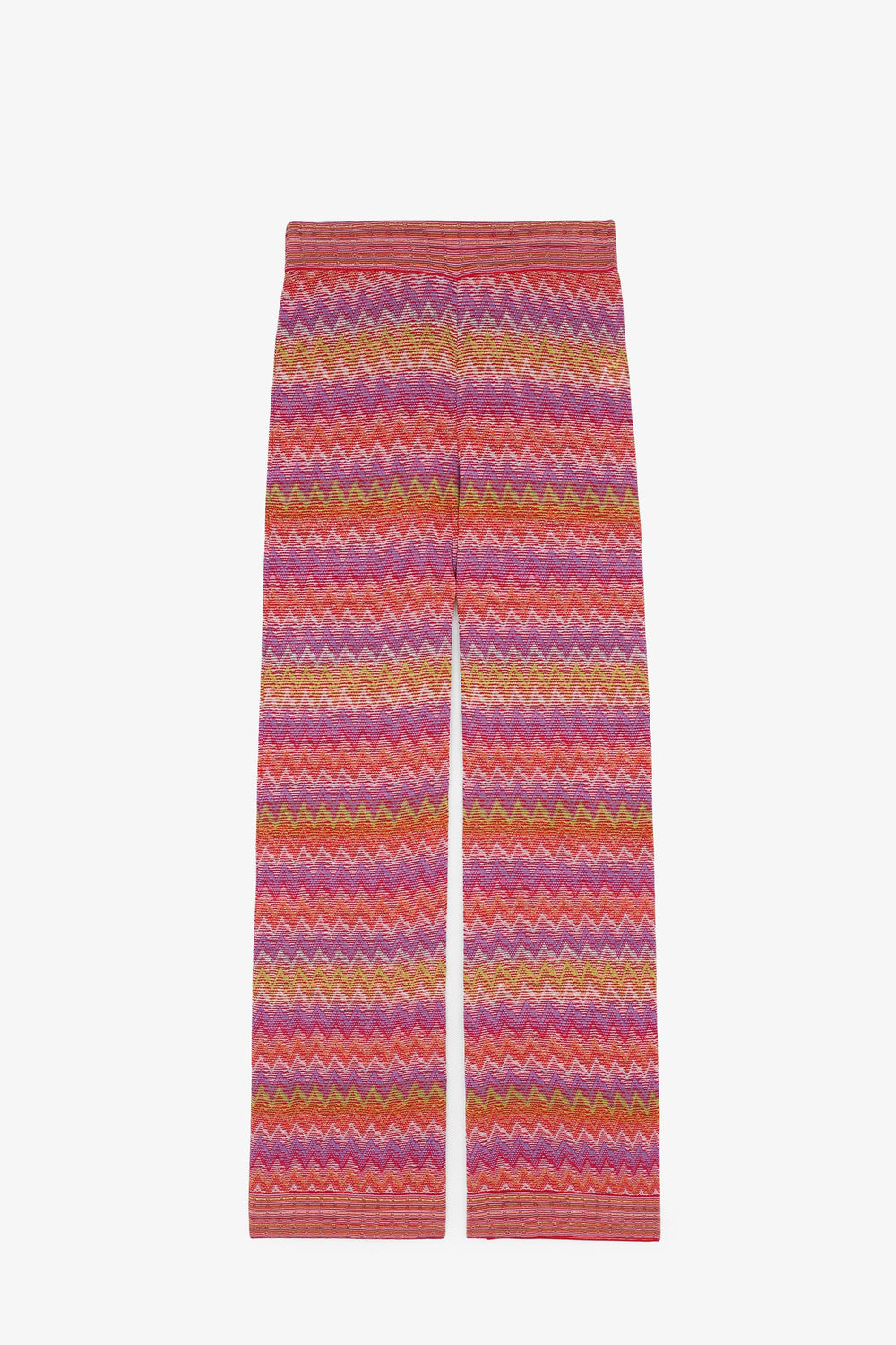 Fine knit trousers with zigzag motif. Culotte cut with elasticated waist.