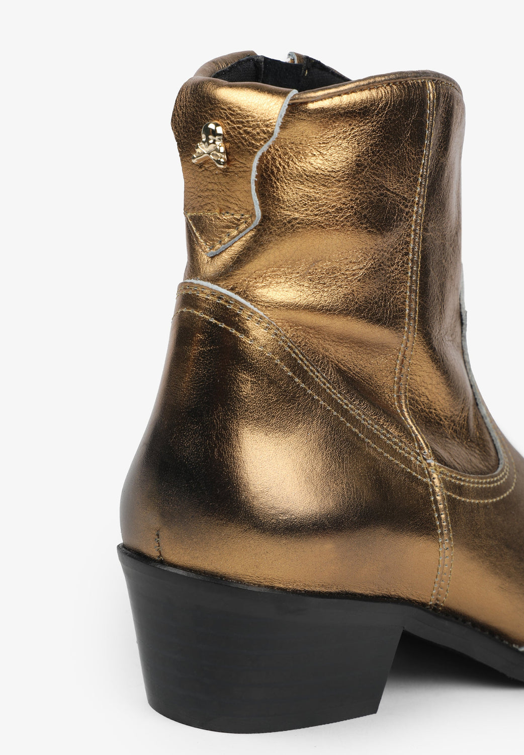 Cowboy ankle boots, made from 100% cowhide leather, zip fastening on the inside, pointed toe and topstitching detail.