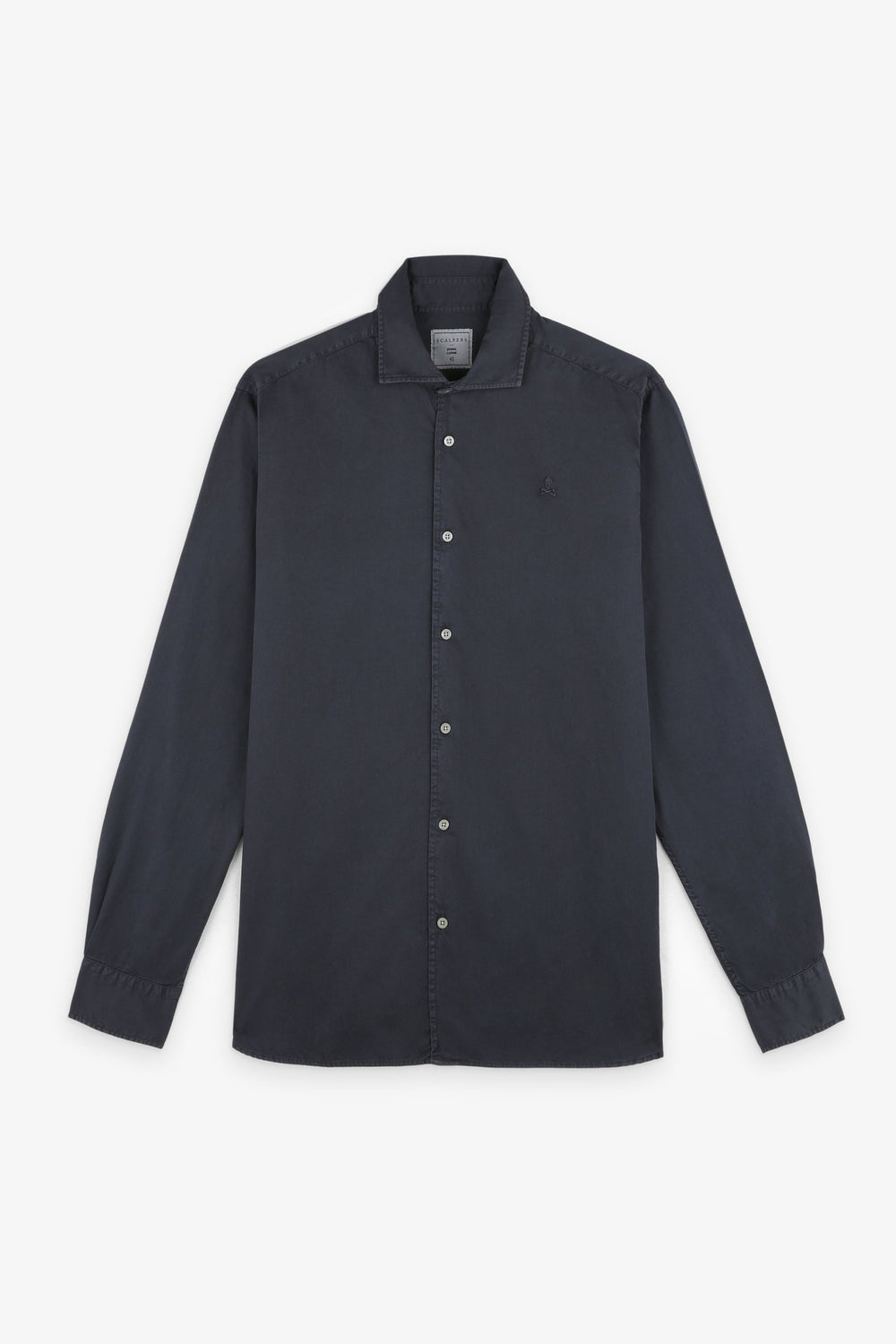 Faded shirt with a matching embroidered skull. Made of 100% cotton, regular fit, Italian collar, button fastening and long sleeves.