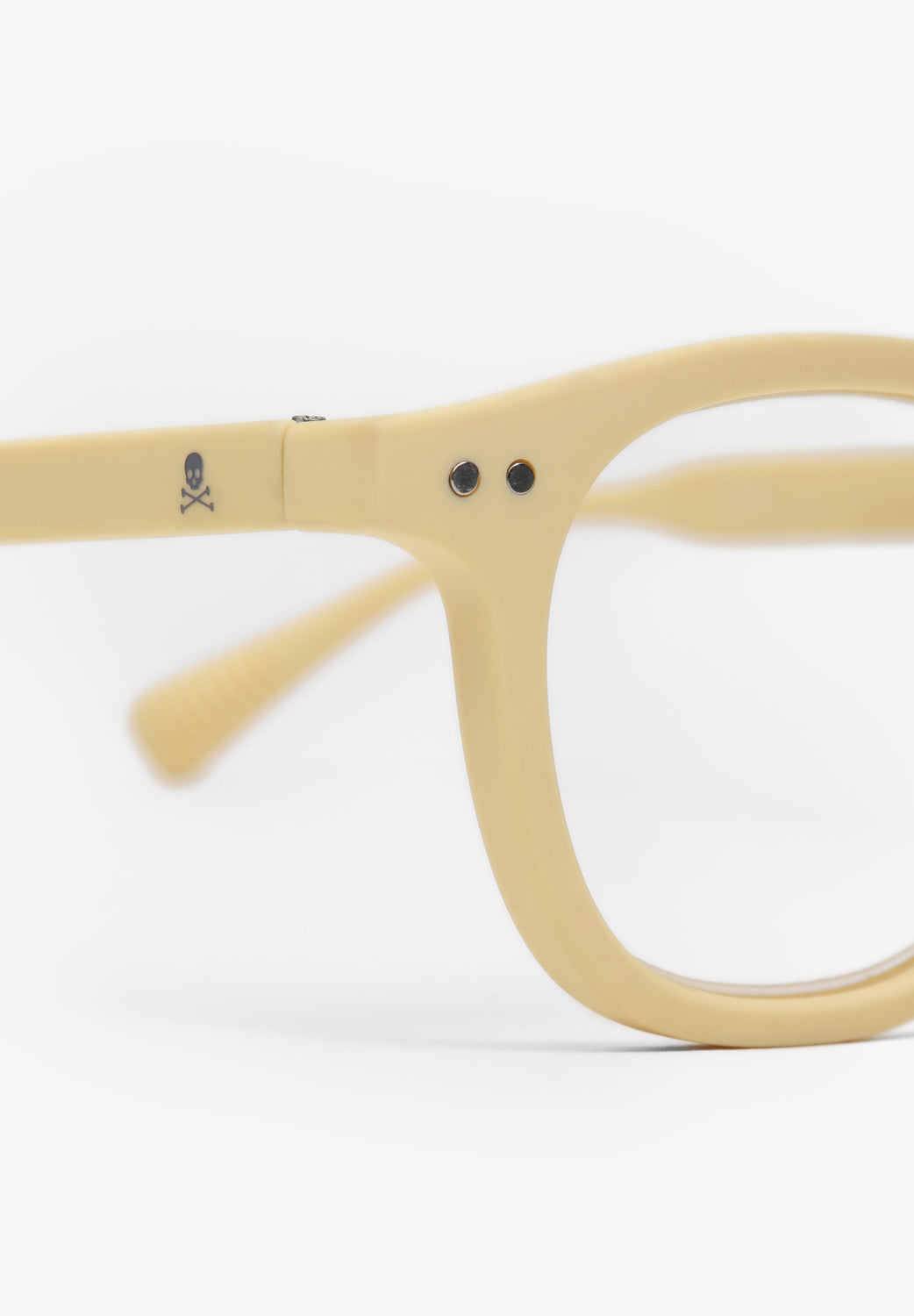 Square resin sunglasses. Made of polycarbonate. Prescription lenses. Skull detail on the side.
