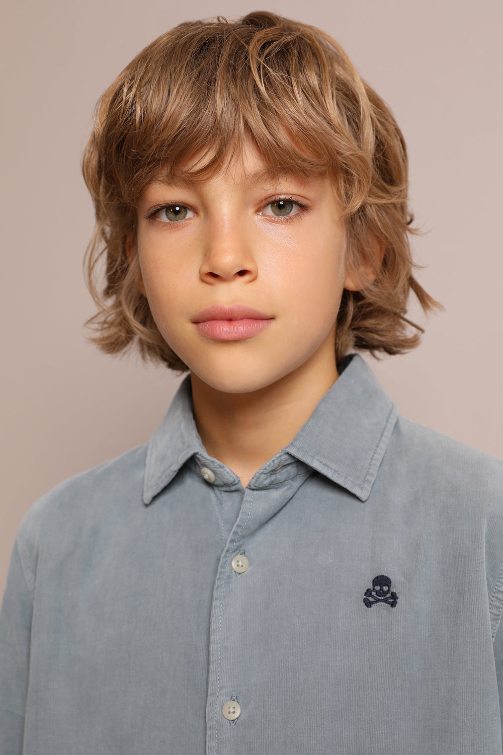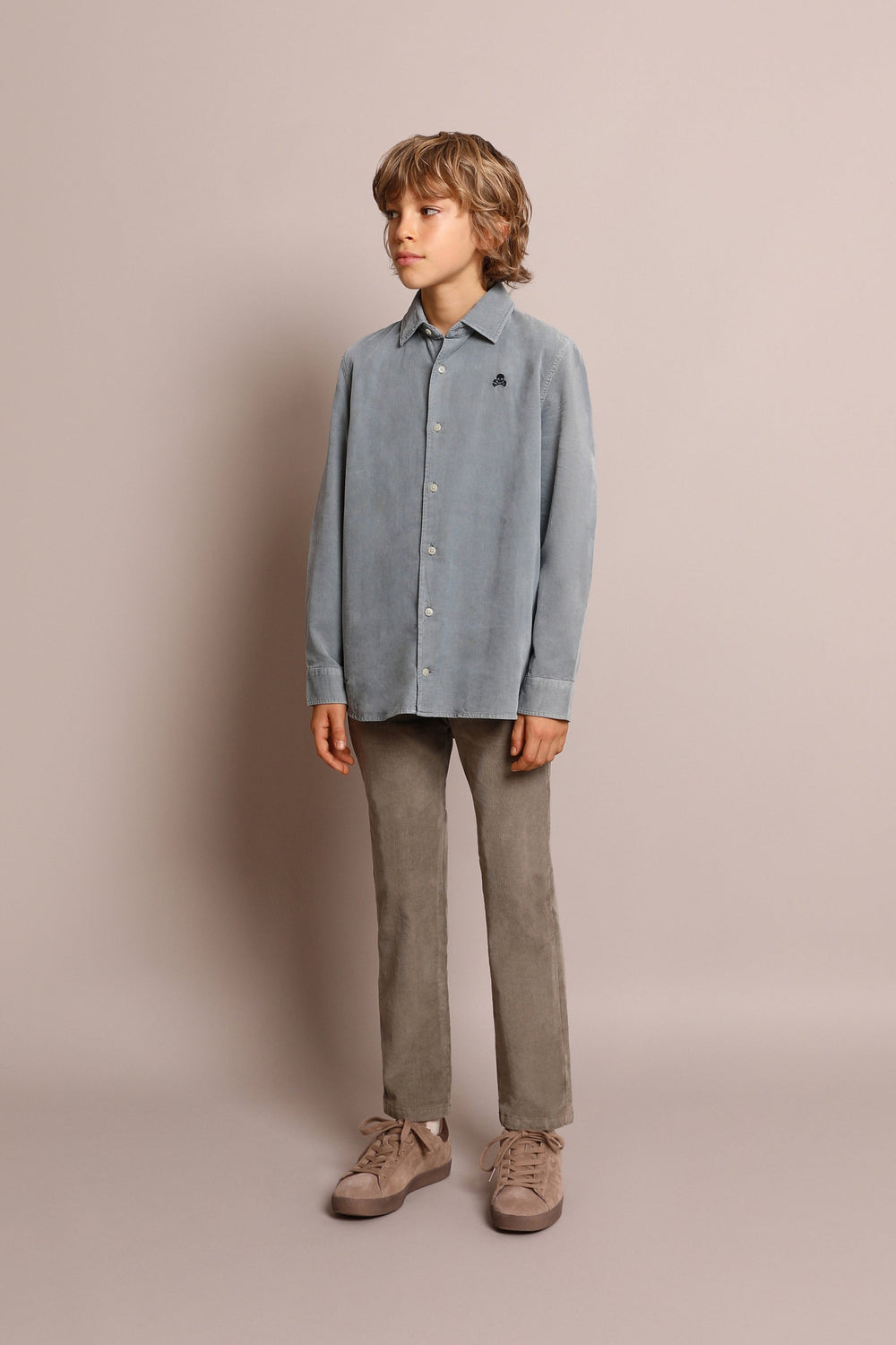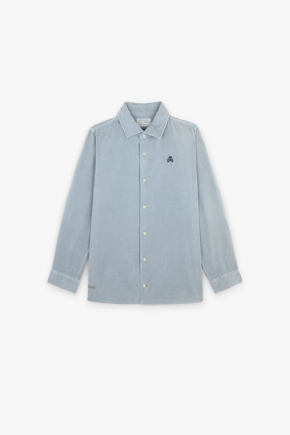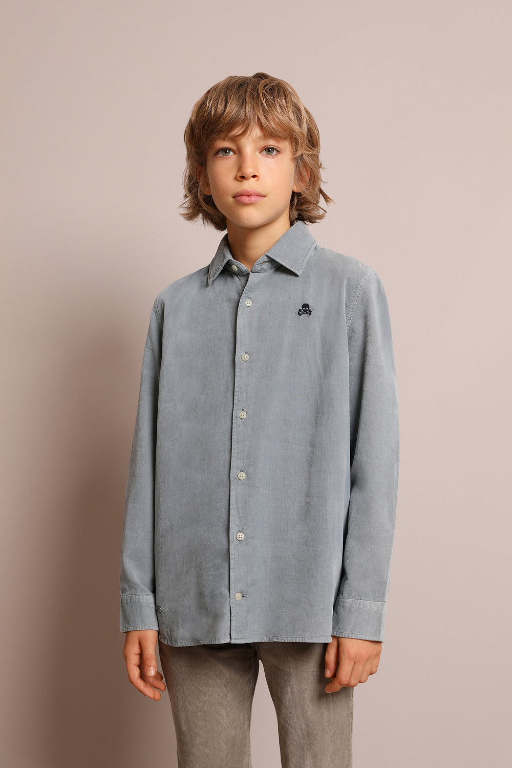 Corduroy shirt with a contrast skull and crossbones made from 100% BCI cotton. Regular fit, Italian collar and button fastening. Long sleeves with buttoned cuffs.