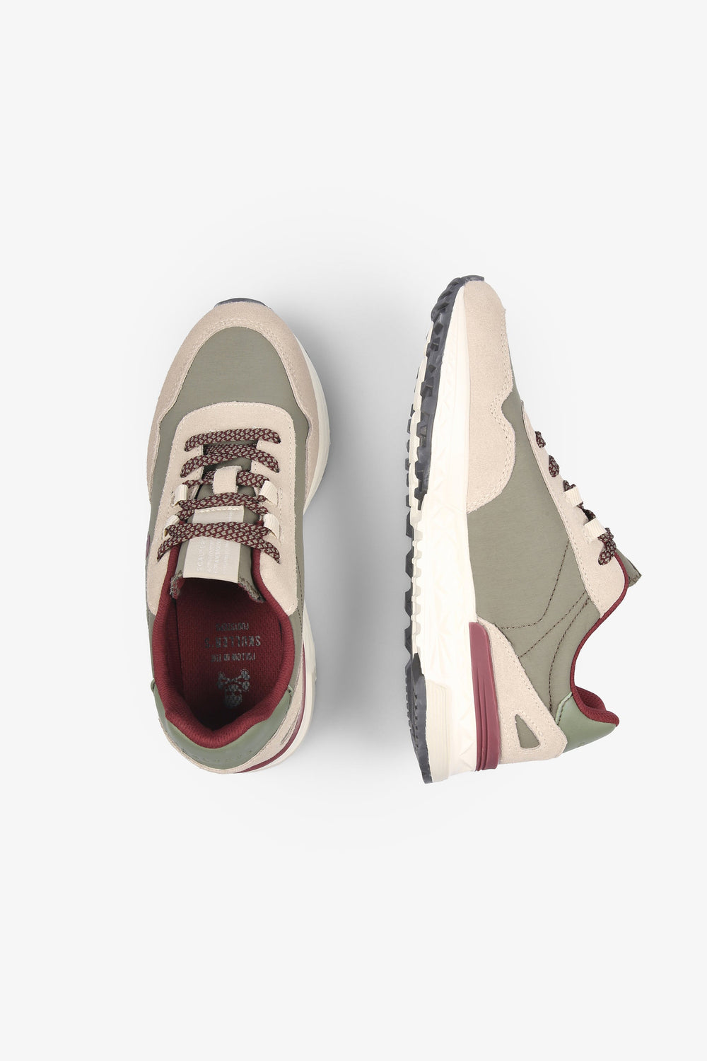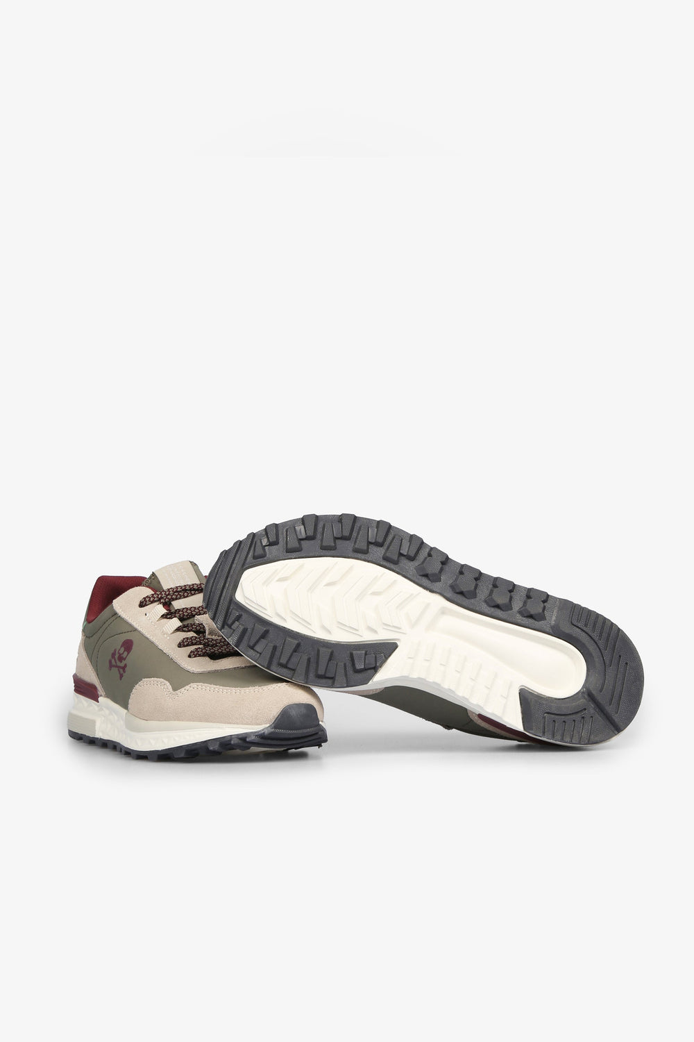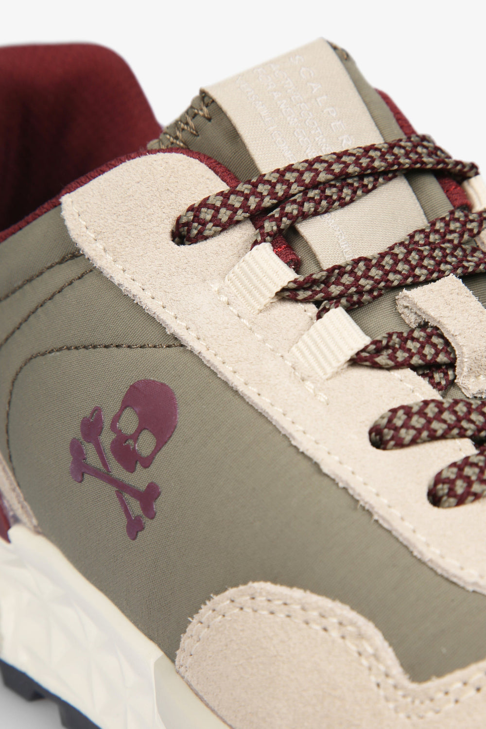 Sneakers with skulls on the sides made from leather and technical fabric. Mottled lace-up fastening and serrated rubber soles. Contrast stabilisers.