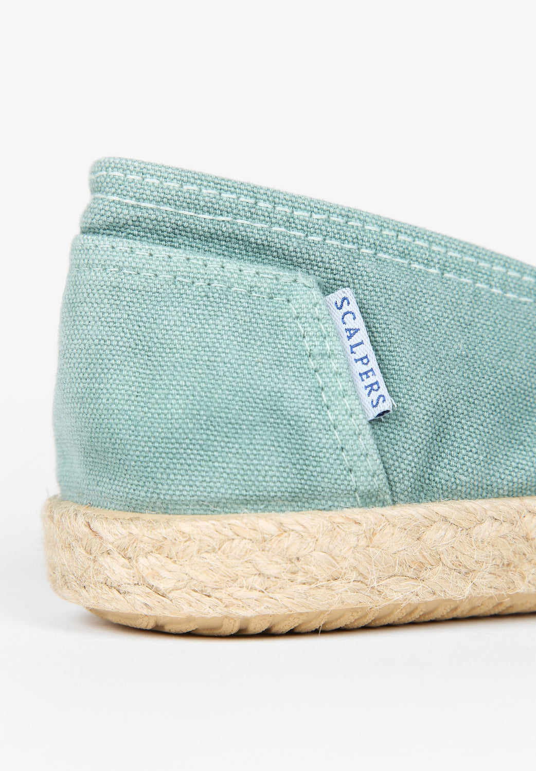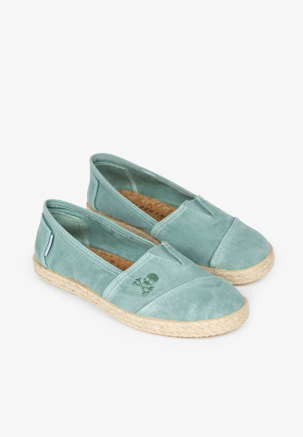 Canvas espadrilles made of 100% recycled cotton. Esparto grass and rubber sole with embroidered skull detail and label.