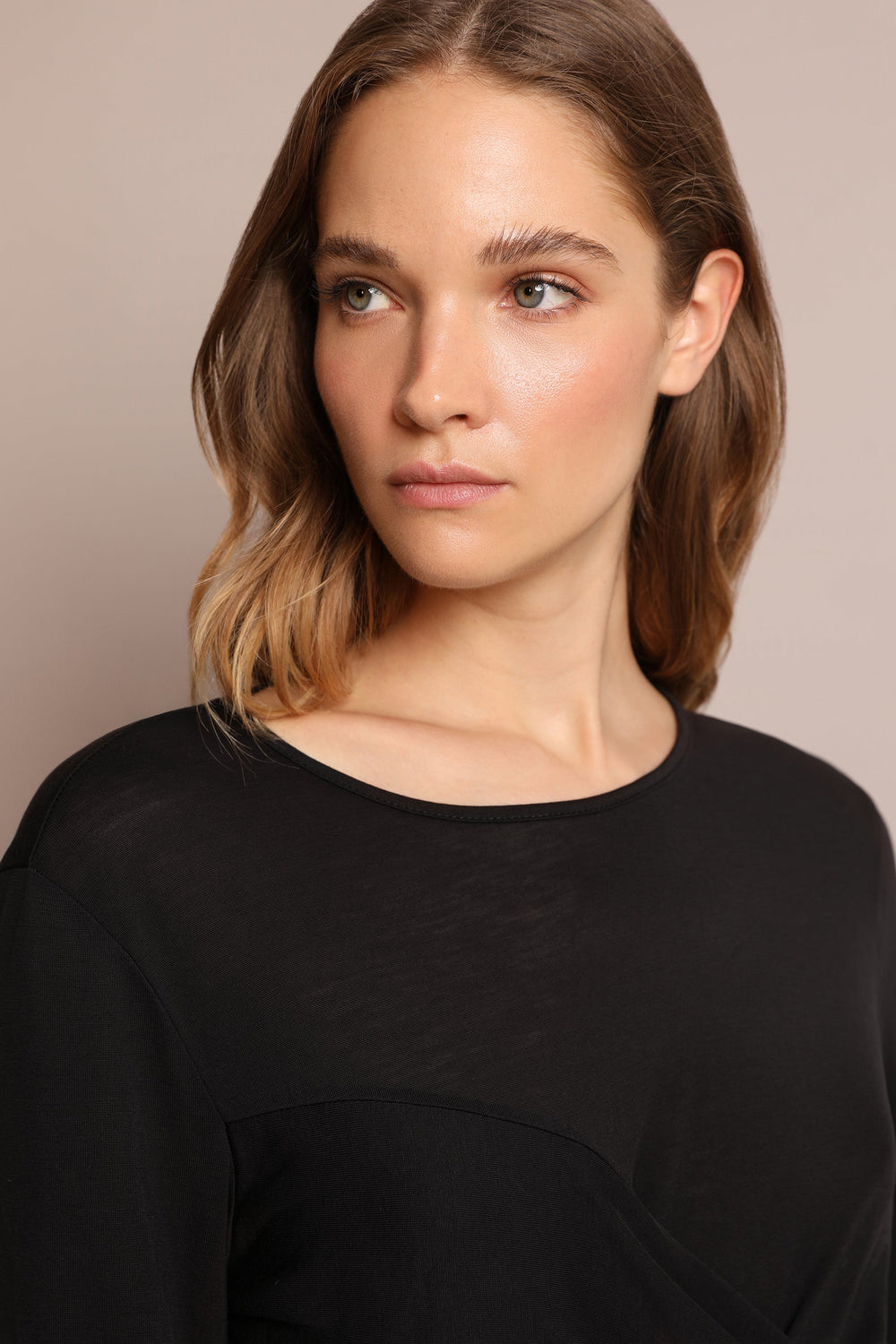 T-shirt with a multi-position knotted bow made from 100% BCI cotton. Slim fit, round neck and long sleeves.