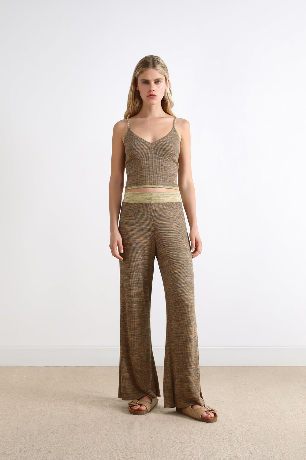 Knit trousers.