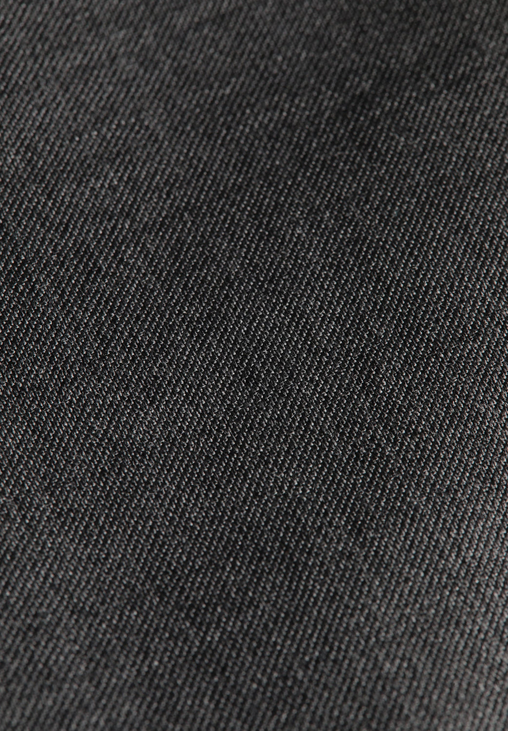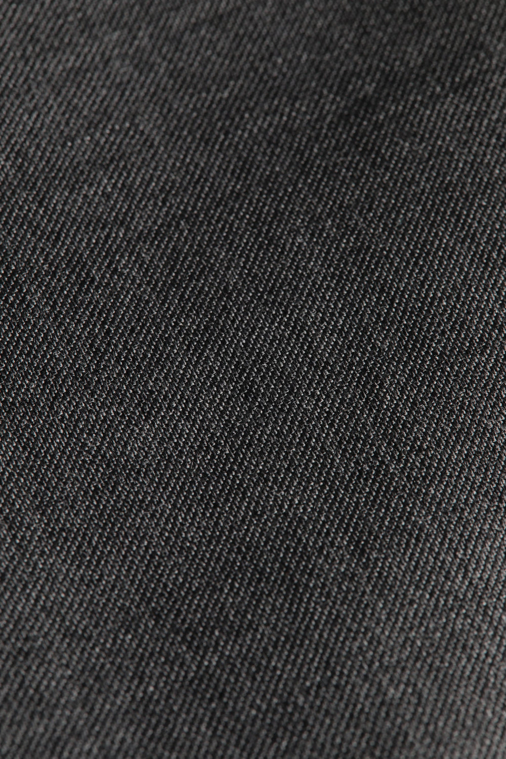 - Straight trousers with an extended button-up fastening at the waist and simple unturned hem